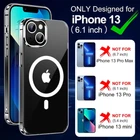 Designed for iPhone 13 case Clear[Compatible with MagSafe][Anti-Yellowing][2 Pcs Glass Screen Protector] Slim Thin Shockproof for Magnetic Phone Case 6.1 inch-Clear