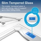 ™ Ultra Slim Digital Bathroom Scales: These ultra-slim bathroom scales from feature 4 precision weighing sensors that deliver unparalleled accuracy in stone, kilograms or pounds. A large 11" x 11" platform ensures weight is evenly distributed across the surface, and an 0.24" tempered glass structure provides a durable and sleek design to suit any home, bathroom or gym. Features: 4 High-precision weight measurement sensors (0.1lb accuracy) Ultra-strong tempered glass platform (6mm) Easy-to-read LCD display with backlight Step-on and step-off power Overload protection Batteries Included (2 x AAA) Specifications: Max Weight: 400lb / 28st / 400kg Resolution: 3.2oz LCD: 2.95 x 1.18 inches with blue backlight Size: 11 x 11 x 0.86 inch HIGH PRECISION WEIGHT SCALE: This digital scale is engineered with 4 advanced sensors which provide pinpoint accuracy to the nearest 0.1lb/0.1kg. Body weight readings can be displayed in pounds, kilograms or stone (lb/kg/st), simply selected your desired reading ULTRA-STRONG GLASS: Each digital bathroom scale is made with ultra-strong 0.24" tempered glass and a large 11" x 11" platform to allow for even weight distribution and increased accuracy. LCD DIGITAL DISPLAY: Our body scale has an easy to read LCD display which is fitted with a bright blue back-light - ideal for both day and night time use. EASY TO USE: Innovative step-on technology saves energy and time as it instantly displays your weight reading as soon as you step on the scales. Each scale for body weight also features overload safety protection and a low battery indicator, making it the perfect bathroom accessory. SLIM & STYLISH: Elegantly designed to fit in your home, bathroom or gym, it is the ideal weight loss companion. The crystal clear glass display is easy to clean and maintains its look over time. 2 x AAA Batteries included.