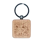 Dinosaurs Landscape Engraved Wood Square Keychain Tag Charm