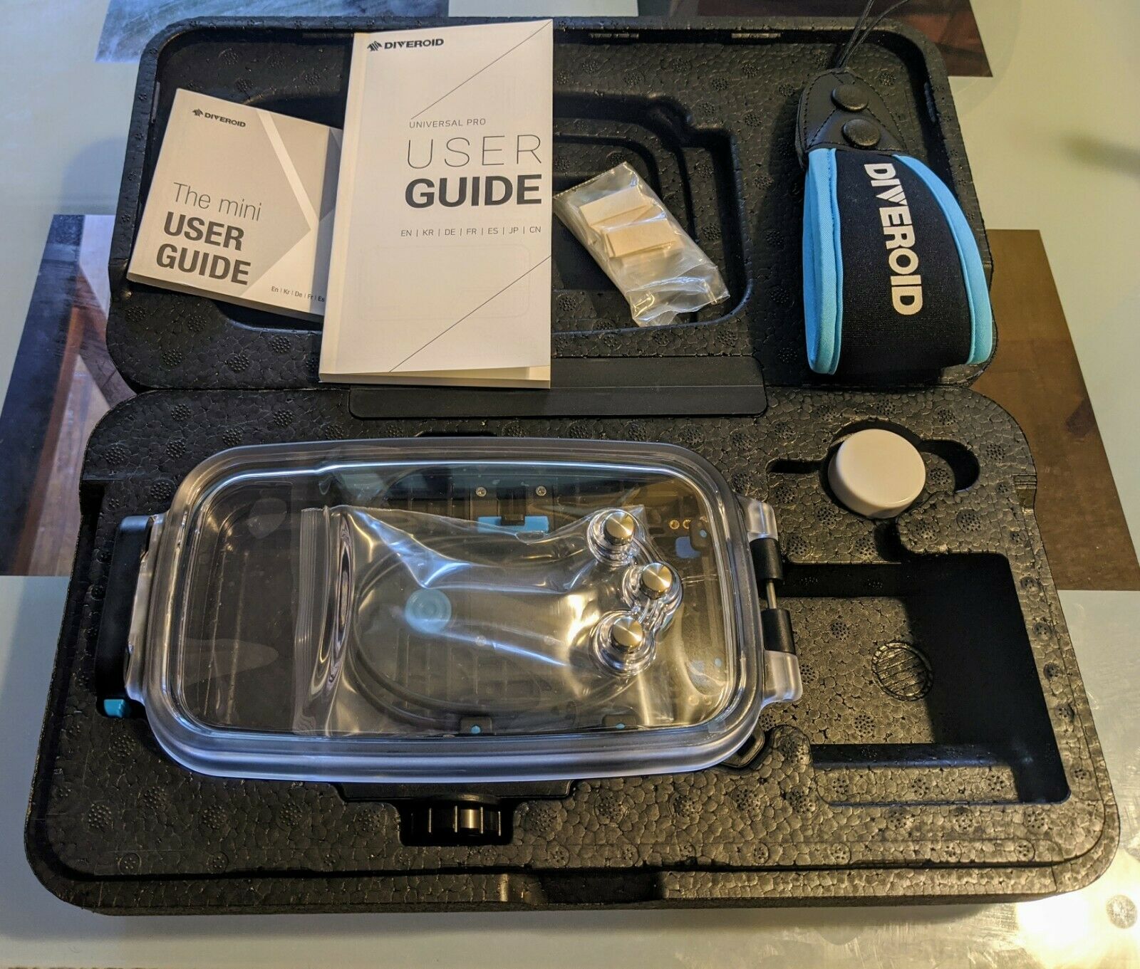 Before buying, please check your phone compatibility HERE https://diveroid.com/compatible Returns will be accepted only for unopened and undamaged items Packaging includes: Universal housing DIVEROID mini - bluetooth dive computer Wrist strap Anti-fog sheets Silicone greese User manual Storage case Buying a diving computer, compass, and camera separately for your dive can get pricey over time and not to mention they are very bulky and can weigh you down while diving. At DIVEROID, we thought of bringing the convenience of having a smartphone always on hand, with the technology of monitoring your dive. Our product includes a dive computer, compass, and logbook all in the palm of your hand. A Diving computer is an essential piece of safety equipment, especially for your first dive. It prevents accidents by measuring the depth, dive duration, and the ascending speed. DIVEROID is the only existing dive computer with an all-in-one solution. Our colorful and high contrast app displaces all the necessary diving information you need such as depth, dive time, ascending time, and temperature at a glance. DIVEROID’s safety alerts will notify you at any time during your dive if you have reached your depth stop, or are ascending too fast. In the case of an emergency, our app will let you know what to do at the current depth you are at to stay safe. DIVEROID alerts let you know you have reached your safety stop. An alert will pop up when it is time to stop. Additional DIVEROID features include: Tilt Compensated 3D Compass Your Real-time Diving Profile You already have a high-quality functioning camera in your hands...your smartphone! Capture endless photos and videos of your dive which can be shared later on via link through the DIVEROID App. The DIVEROID housing device protects your phone underwater while fully allowing you to use your phone with the simple button operations on the device. *Disclaimer: Some features such as the ultra-wide-angle, zoom, selfie and 4k video quality only works on supported smartphones* The deeper you dive, the less light you will see thus the less color is reflected. That’s why most of underwater pictures and videos are blue or green. To fix this, you may have to use a red lens filter on your camera. We make this possible with our algorithm. It makes the real-time color correction function restore your pictures automatically to the original color. * Notice: In order to watch this video in optimal quality, we recommend using Chrome browser which supports 4K resolution. Other browsers such as Safari may not support 4K resolution for Youtube videos. The video was taken with an iPhone8 in 4K mode. Don't forget to select 4K as a quality option! Are you tired of keeping track of your dive log by pencil and paper? DIVEROID keeps track of your entire dive, from start to finish at a glance. The app auto-syncs the photos and videos taken on your dive for you to, later on, look back on. You can view the specific photo taken at each depth of your dive. Your logbook can be shared with others by link via Social media, text message or email. The person who you shared the link with, can see your complete logbook on their web browser. Customize with stickers your diving story and share your dive with your friends, family, and others via SNS, Text or email. DIVEROID  is compatible with almost every major smartphone in the market today. DIVEROID has an inner housing adjustment so you can fit your smartphone perfectly in the device. The universal buttons on the outside are for easy use and accessibility of your phone during your dive. Can’t find your device? No problem at all! Search for your smartphone to check out its compatibility! [Important NOTICE] - Android Users Thanks to your help we were able to check the compatibility of various smartphones for our app and found serious issues on Huawei, Xiaomi, Oppo and Oneplus which are all made in China. Basically, smartphones produced in China are very difficult to optimize for they have highly customized ROM that we cannot fully access. Camera functions are too unstable and not even working for some models. We can't even figure out which models have problems as it occurs intermittently. For example, we found a serious issue on Huawei P20 pro, but some backers who are using the same phone reported that it worked just fine. So you must test our app on your smartphone beforehand. However, even if you can't find any issues on this test, we can't guarantee that it’ll stay perfectly compatible in the future because smartphones produced in China are continuously updating in unpredictable ways which may create new tricky issues. Sure, we can run further tests and fix the problem, but we don't know if we can fix it completely and how long it’ll take. We don't want you to take any risks using it. We go through a strict water pressure chamber, closed water test and an open water test procedure with our devices to ensure that the best performance and resistance are met. Only the best of the best materials are used to make DIVEROID to ensure you the best, and safest diving experience every time. DIVEROID has five ‘Heat sink™’ drains which release the heat so it prevents fogging inside the housing. DIVEROID had a double O-ring structure built in the housing with a 60M/200ft waterproof functionality. We make DIVEROID devices with only the top tier materials like Gorilla Glass™, for strength and scratch resistance, and Polycarbonate with Glass fiber for high strength and durability. DIVEROID supports free diving mode with features including depth alarm, stopwatch for static apnea, and even convenient boat calling straight from the app. DIVEROID has all the information freedivers need, including depth, dive time, water temperature, and surface time reach. Control your dive with depth alarm features that can be set for up to 6 different depths. These settings inform you of the current depth of the water you are in. Need to call a boat to pick
