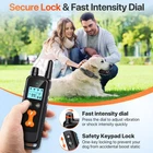 The strap of the collar is adjustable, ensuring a perfect fit for dogs of any size. Say goodbye to worries about being too loose or tight for your pet Equipped with an external antenna, this dog shock collar offers a remote distance of up to 2300ft in open areas, ensuring a steady connection IP68 Waterproof Design this collar allows dogs to roam freely even in rainy weather, providing durability and reliability Long-lasting Rechargeable Battery : Featuring a rechargeable lithium battery, this shock collar is not only environmentally friendly but also offers long standby time, ensuring energy efficiency Versatile Training Modes : With four training modes including warning tone, electric shock, and shock boost, this collar provides comprehensive training options to suit your dog's needs Keyboard Lock Function : The screen lock function prevents accidental triggering, ensuring alarms are not mistakenly set off, and providing peace of mind during training sessions Package Contents : 1 Remote > 1 Receiver Collar 1 Test Light Tool 1 Charger Cable 1 User Manual 2 Points 2 Silicone Caps Friendly Tips: : Please charge the remote and receiver before first use Carefully read the manual before using this dog training collar Avoid wearing the receiver for more than 12 hours daily; remove the collar every 2 hours if possible Start training dogs at a lower level to help them adapt to the training tool [4 Training Modes & 4 Channels] This dog shock collars for medium dogs features 4 effective training modes: beep, shock (1-99 Level), and shock boost (10%) to efficiently train your dogs and discourage unwanted behaviors. Additionally, its channel function enables you to train up to 4 dogs simultaneously, making it a versatile tool for multi-pet households. [Secure Keyboard Lock & Extended 2300ft Range]Ensure safety with the side security keyboard lock on the remote, preventing any accidental operations. With a range of up to 2300 feet (766 yards), this dog shock collar for large dogs gives your pet the freedom to roam off-leash during outdoor adventures or travels. Train your pet effortlessly in the backyard, park, seaside, or any preferred location. [IP68 Waterproof e Collar& Comfortable Collar ] Our shock collar for dogs 40-60 lbs waterproof boasts an IP68 waterproof and dustproof, is convenient for dogs playing around a pool or in the rain freely. ensuring optimal performance even underwater up to 30 meters. waterproof design of the receiver. [Long Lasting Battery Life & Fast Charging] Our shock collar waterproof is rechargeable, reaching full charge in only 2 hours. Enjoy up to 20 days of use on a single charge for the e-collar and an impressive 30 days for the transmitter. Plus, conveniently monitor battery levels for both the remote and receiver on the remote's display. [Fits 40-120lbs Medium to Large Dogs] The strap of this dos shock collar is adjustable from 8 to 30 inches, ensuring comfort and softness for your pet. Specifically designed for dogs weighing between 40 to 120 lbs, it serves as an excellent training collar for medium to large breeds. Remote size: approximately 7.12 inches x 1.96 inches x 0.96 inches; receiver size: approximately 3.16 inches x 1.1 inches x 1.44 inches.