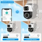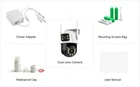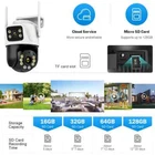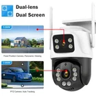 Feature : - Dual lens camera. Top Lens is 3.6MM; Bottom Lens is 3.6MM - Dual-lens dual-sensor dual-screen, 360°wide-angle Viewing + Long Distance Viewing to achieve clear monitoring from far and near; - Dual light source design, built-in infrared light + white light, night vision infrared and night vision full color can be set; - Pan Tilt Move: Bottom Lens: Horizontal: 270 degree; Vertical: 90 degree. - 2.4G WIFI + RJ45 network port for Internet access; -The camera connects to the app through Bluetooth, making it convenient and fast - Support TF storage (up to 128G)and cloud storage (need pay in iCSee app); - Two-way voice intercom, two-way video synchronous recording and playback - Humanoid detection Smart Alert: Motion Triggered with Alarm, APP Push notifications and Alarm recording - Auto Tracking: When ip camera detects object moving, it will auto move follow the object. -Smart Phone APP :: "iCSEE -Support ONVIF and NVR Packing List: 1x PTZ Camera 1x User Manual 1x Power Supply 1x Screws Bag 6MP 8MP comparison We have two pixel options, 6MP and 8MP, to purchase according to our own needs 6MP cversion: Means that the single lens is 2MP, so the dual-lens is 3MP+3MP=6MP. 8MP version: Means that the single lens is 4MP, so the dual-lens is 4MP+4MP=8MP. 270° Pan & 90° Tilt Rotate Due to the horizontal 270° and the vertical 90 °, you can remotely control the wifi outdoor camera to view every corner via your mobile phone. Dual Lens and Dual Screen The camera has two lenses, the upper lens is fixed, and the lower lens can rotate, perfectly achieving one camera to monitor two directions. In the APP, dual screen display of monitoring images AI Auto Tracking As long as the human body appears within the monitoring range of the camera, the camera will automatically detect the human body and monitor its movement Smoothly Two Way Audio Built in microphone and speaker, supporting real-time video, allowing you to have conversations and conversations with people in front of the camera no matter where you are Smart Night Vision Built in white LED and infrared LED, you can choose between color night vision or infrared black and white night vision. Of course, the camera can also be automatically adjusted, and when it's dark, it automatically changes to infrared night vision mode. You can also set the camera to automatically turn on the light when a human body is detected at night on the app IP66 Waterproof / Dustproof This camera is equipped with an IP66 shell, which is waterproof, sun proof, and dustproof. Don't be afraid of bad weather. The camera and nightpot are working normally AI Human Detection Alerts Set up a quick way to find human targets, support information push, light tube alarm, and sound alarm, and be able to keep track of the monitoring location information at any time, no matter where you are. Support TF Card Storage and Cloud Storage(Need Pay For) The camera supports up to 128GB TF card local backup and also provides cloud storage service(Need to pay extra cost). 2.4Ghz Wifi Connection(Bluetooth connectivity)& LAN Connection The camera supports direct connection between 2.4GWIFI and network cable. When connecting to the app, you only need to open Bluetooth on your phone to quickly and successfully connect, without the need for scanning codes and eliminating cumbersome steps ICSEE App Remote Access You can get a live broadcast of the capture video anytime, anywhere. Supporting Multiple Users watching live video at the same time via phone APP. Work with Alexa Support Alexa to make your life more intelligent Support ONVIF and NVR Support NVR, multiple cameras displayed on the computer at the same time, no longer worrying about how to monitor multiple cameras, A Variety Of Usage Scenarios The Wifi Connection Can Be Removed From The Traditional Camera Wiring Trouble, Easy To Install To The Location You Want To Install.