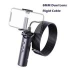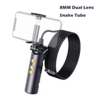 Warning/Disclaimer ⚠️Camera products can only be used for the purposes permissible under the applicable law and regulations. Misuse of the product for any illegal activities is strictly forbidden. Please comply with the applicable laws and regulations in your country/area. Key features: -WIFI connection which support Android phones and Iphone. -Both front camera and the side camera are HD1080P resolution,good for image capture, video recording. -Two views are dispalyed on one monitor. -2600mah battery ,5 hours working time. -Light button used to control LED lights to work in dark areas -Can record video and take picture,Convenient observation and follow-up analysis. -IP68 waterproof camera. -Hand-held design and Phone Holder design ,Easy to use with one hand. -Equipped with adequate accessories, Hook, Magnet, which can adapt to a variety of environments. Specification: Model:F280 Pixel camera: Both 1920*1080 Camera diameter: 8MM Battery capacity: 2600mhA Working time: 5H Power input: DC 5V 500mA/1A LED light: 8+1pcs/6+1pcs Focal length: 5-10cm/2-6cm Cable length:1m/3m/5m for snake tube,2m/5m/10m for rigid cable Image Format: JPG Video format: MP4 Resolution: 1) The lens does not auto-focus. 2) The best resolution distance is 6cm/4cm(front camera/side camera). The resolution reduces when the distance is farther or closer. WIFI connection support Android phones and Iphone. the "M"button:Switchable display mode,Two views are dispalyed on one monitor. Both front camera and the side camera are HD1080P Dual lens for Two Views 8 PCS+1 PCS LED lights for 8MM Lens A Button for Adjustable brightness 2600mAh Battery is Able To Work Continuously For 5 Hours Hand-held Design,Ergonomic design for comfortable operation. Phone Holder IP68 Waterproof Dual Lens Snake Tube Surrounded by Steel Accessories:Hook, Magnet.