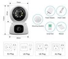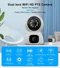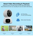 Feature: 1. 4MP HD double eye PTZ camera; 2. Double lens dual -sensor dual screen, ultra -wide angle, 2.8mm + 4mm to achieve clear surveillance in the distance and nearby; 3. Double source design, in infrared light +white light, night vision infrared and night vision full color; 4. PAN & Tilt: 0 ~ 355°, perpendicular to 0 to 90 °; 5. Support 2.4G WiFi connection, support application O-kan 6. Support TF storage and cloud storage (free one month cloud storage); 7. Support two -way voice intercom, audio and video recording and playback 8. Support humanoid intelligent tracking/mobile alert; 9. Support remote management of Android/iOS applications. 10. Power DC 5V Double lens dual screen/ dual -screen simultaneous recording One lens can be rotated up and down, left and right, and played in real time. One lens is a fixed shot of the corresponding area monitoring screen. One screen can view real-time images of two lenses at the same time 2MP*2 HD High Resolution 2MP*2 has higher definition. Bring you a smooth video playback experience Motion Detection Alert Get Real-Time Alerts, you will receive an alert message upon unusual motion detected and be directed to the alert video page to see what was happening around your home. When the thief come in the surveillance area, camera will send the push notifications to your mobile phone. Can save the evidence via snapshots/video from APP. Besides, the camera can scare the thief. Just like a guard to ensure your security. This CCTV camera let you no worry to miss any emergency events. Event recording to micro SD card or cloud storage. You could also download the alert videos from phone app. Real Two Way Audio Built in microphone and speaker,support real time video,which allows you talk with your visitor in real time wherever you are. Area Detection-Precise Defense You can monitor important monitoring alert areas on mobile phone applications Large Viewing Angle Watching over a large area is now becoming easier. Boasting 355° pan & 90° tilt Talk with your family whenever, never miss the important part of family life All-round Detection Colorful Night Vision Thanks to powerful infrared LEDs, indoor ip camera can capture every move of would-be burglars at night with vivid and noise-free details. Suitable For Many Installation Place This WiFi camera can meet most of the requirement, like baby monitor, office, warehouse, restaurant, store and home security. Micro SD Card &Play Back Built-in SD card slot, thie video surveillance camera support up to 128g Micro SD card (SD card not includeed) The PTZ camera also supports encrypted secured cloud storage, protects recording in cloud against any footage loss result from damage such as theft of the security camera product information