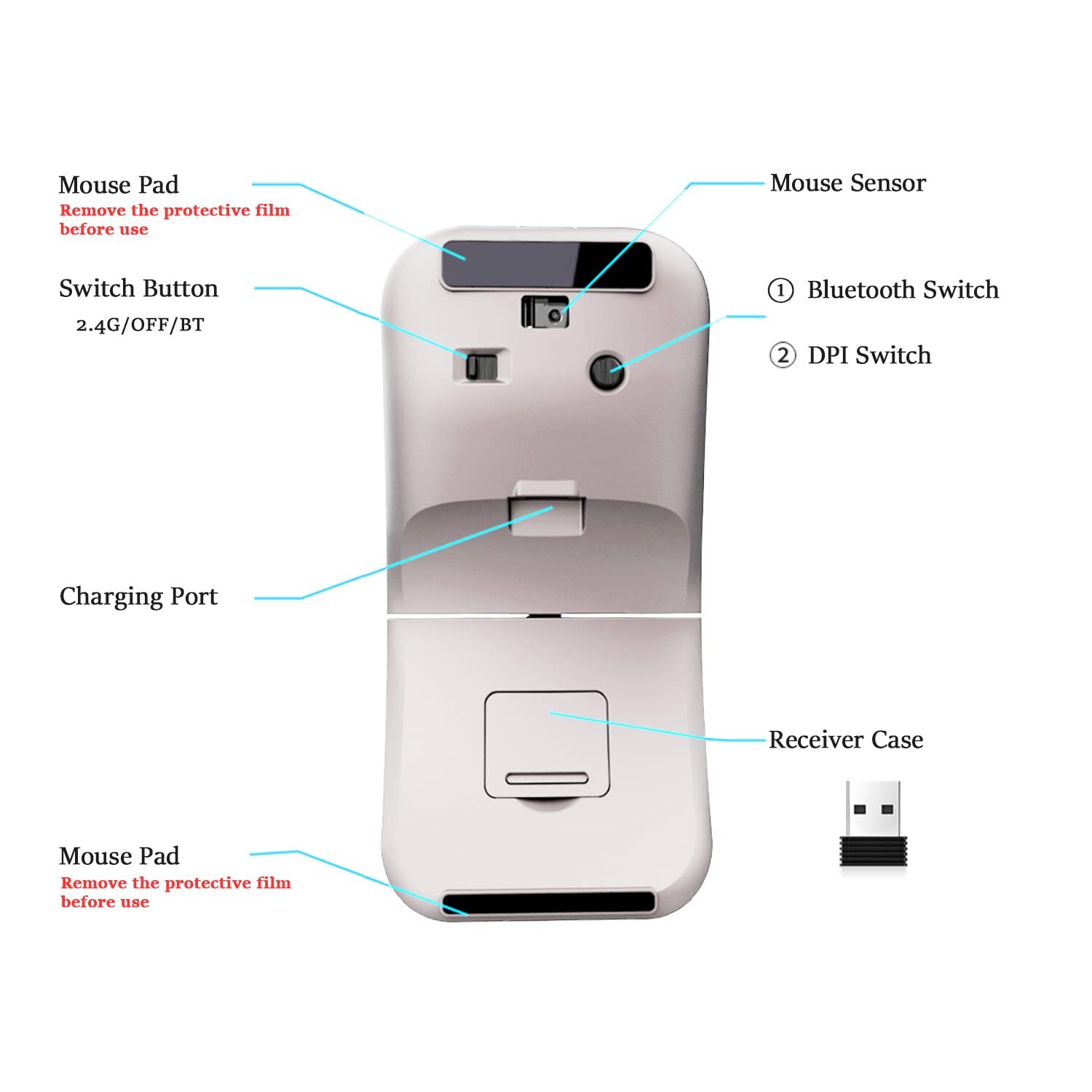 【Muted Click】Upgraded optical sensor, smooth and fast response offer you a better online time. The Left and right button silent design makes you work or play in a quiet environment, and won’t disturb others when you are at home or in the office.Wireless range: 32.8 feet in an open area 【Snaps Flat in Pocket】Works for IOS >13.4 Microsoft Windows, it must be Bluetooth 5.0 enabled. Windows 7, 8, 8.1,10, 11, and Linux. Works for Notebook,Chromebook,PC,Laptop,Computer,snaps flat and slips easily into a pocket 【ARC Wireless Mouse】Arc design fits hands curve. Takes small space after rotating, lightweight and mini (size: 4.6"*2.3"*0.3") compact design occupies less space on your desk. Perfect fits for your left/right hand and your mobile lifestyle 【Supports 2 Devices】This Rotating wireless mouse has a dual mode connection,Bluetooth 5.0 brings the quick response, precise movement, stable connection & smoother tracking. The Bluetooth / 2.4GHz wireless mouse can work on 2 devices at the same time.Connecting 1 device through Bluetooth and the other through a 2.4GHz USB receiver. Switching from your desktop to your tablet, laptop to Mac 【Warranty Service】This wireless mouse enjoys 30 days of money-back and a 12-month worry-free warranty. The arc mouse will be switched off automatically when the nano receiver is disconnected, or the PC is powered off
