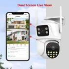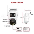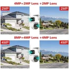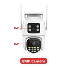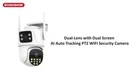 Dual-Lens with Dual Screen AI Auto Tracking PTZ WIFI Security Camera 4MP / 8MP Resolution Options 4MP camera means that the single lens is 2MP, so the dual-lens is 2MP+2MP=4MP. 8MP camera means that the single lens is 4MP, so the dual-lens is 4MP+4MP=8MP. Two Way Audio Built in microphone and speaker,support real time video,which allows you talk with your visitor in real time wherever you are. Dual Lens and Dual Screens Live View There are 2 video screens in APP, the upper one is fixed position camera and the lower one is PTZ camera. Three Night Vision Options Built -in White LED and IR LED, you can choose color night vision or infrared black and white night vision according to your needs. Pan Tilt Rotation Due to the horizontal 270° and the vertical 90 °, you can remotely control the wifi outdoor camera to view every corner via your mobile phone. AI Auto Tracking When someone passes through the protected area, the camera will detect the person's movement and follow the person. AI Human detection Alerts When someone break into surveillance area , it can alert and push the notification to your phone timely, Stay informed about what's happening around you,Effectively protect the safety of your family and property. TF Card & Cloud Storage support up to 128gb TF card (optional) , Also support Cloud services. IP66 Waterproof Install Methods Support ceilling and wall installations Connection Methods support bluetooth fast connection / 2.4ghz wifi connection / RJ45 lan cable connection / work with onvif nvr Multi-user live view the camera simultaneously ( APP : iCSee )