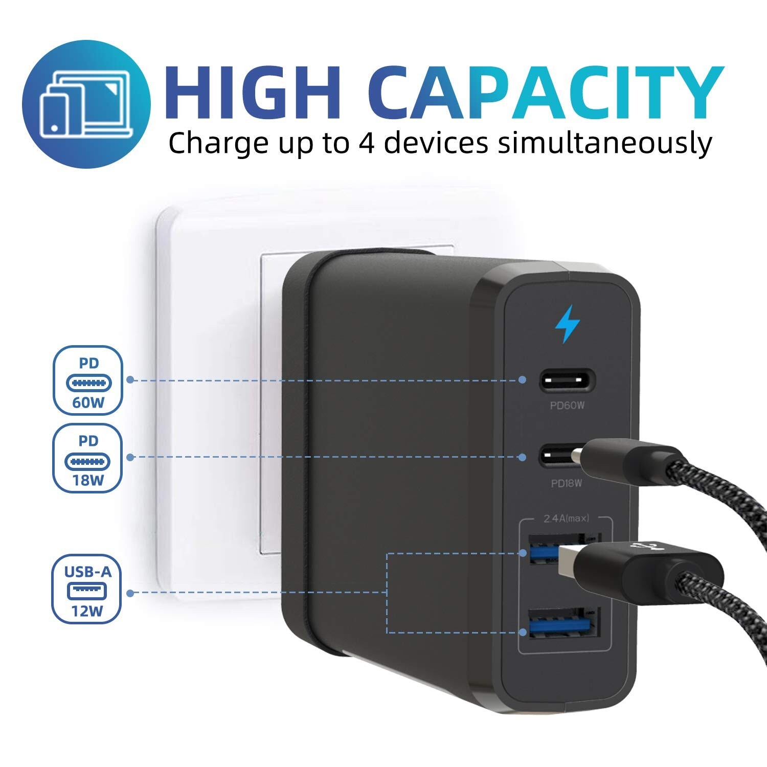 Dual USB-C 75W 4-Port Fast Charger Adapter by KSW KINGDO for Travel
