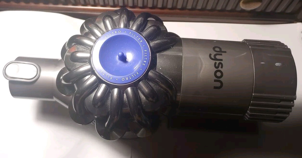 This Dyson V6 Animal cordless vacuum cleaner comes with a charger and wall mount. It features a stick design in a purple color, and includes a filter, nozzle, floor brush, and charger. The vacuum is bagless and operated by battery. It is suitable for cleaning various surfaces and is a good addition to any home. Tested and working. The battery still holds a good charge. Vacuum is used and does have a few little scratches and dings but still in overall good condition. See pics for condition and included attachments. Thank you