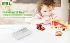Brand EBL Color Random Output Voltage 1.2 Volts Input Voltage 5 Volts Current Rating 2 Amps About this item Packages: EBL AAA rechargeable batteries 1100mAh (8 Packs) and 8 slot AA AAA rechargeable battery charger. High capacity batteries: No longer to worry about the endurance of the batteries, EBL 2800mAh 1.2V AA Batteries and AAA Batteries 1100mAh will provide ultra strong power for your devices to performance well and operate longer. EBL batteries will holds 80% power after 3 years benefit from its concentration to low self-discharge project. Independent charging slot: It can random charge up to 8 batteries of Ni-MH AA AAA rechargeable batteries at the same time. One battery charged at one time is workable. When the battery is fully charged, it will automatically stop charging, and with LED indicator USB Input Design: USB Input with multiple Charging Options, is suitable for all kinds of 5V 2A Power supply, like power bank, adapter,(NOTE: Fit for 2.0A adapter only, DO NOT use 1.0A adapter)easy for daily use, more convenient. Battery storage case: Batteries are packed with battery storage case, easy to storage batteries, very convenient for taking and travelling.