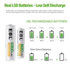 EBL 16 Sets AA AAA Batteries Combo with 8PCS AA 2300mAh & 8-Pack AAA 800mAh Rechargeable Batteries Product Details Style: AAA 800 +AA 2300 Brand: EBL MPN: AAA 800+AA 2300 UPC: 600316416238 EAN: 0600316416238 Number of Batteries: 8 AAA batteries required. (included) Brand: EBL Battery Cell Composition: NiMH Recommended Uses For Product: Camera Unit Count: 1.0 Count Package Dimensions: 4.9 x 4.5 x 0.8 inches Item Weight: 13.6 ounces Item model number: AAA 800+AA 2300 Batteries: 8 AAA batteries required. (included) Is Discontinued By Manufacturer: No Date First Available: August 7, 2015 Manufacturer: EBL Country of Origin: China EBL add mix-protection additive to the negative pole of batteries, protect the material from degradation in the progress of charge and discharge, 1200 Tech. Embedded seal structure, ultra slim and make more inner space, using DBCK steel shell which can protect the battery against explosion due to overpressure. Storage Cases - every 4 batteries we packed in one professional battery storage case - carefulness due to professional Ni-MH high quality cell, no memory effect, can be charged and used at anytime.