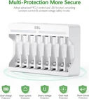 EBL Rechargeable AAA Batteries 16 Packs with Charger, 1100mAh High Capacity, Low Self Discharge AAA Rechargeable Battery, Individual AA AAA Battery Charger About this item Packages - EBL 1.2V NiMH AAA rechargeable batteries 1100mAh (16 Counts) with 4 battery storage cases and 8 slot AA AAA rechargeable battery charger. 1200 Tech - EBL triple aaa battery with ProCyco (Professional recycle) technology, helps maximize battery best power performance while charging. Low self-discharge - Embedded seal structure expand the space of crystal lattice, making more room for hydrogen, so the EBL rechargeable aaa batteries will hold 80% power after 3 years benefit from its concentration to low self-discharge project. Individual Battery Charger - The battery charger has 8 independent charge slots, so you can fastly charge any number of aa aaa ni-mh/ni-cd rechargeable batteries, without charging in pair. Safety Guarantee - The battery charger with advanced MCU control and -∆V function, over-heat and over-current protection, short-circuit protection, non-rechargeable and defective battery detection. USB Input Design - Make the charger with multiple Charging Options, is suitable for all kinds of 5V 2A Power supply, like power bank, adapter,(NOTE: Fit for 2.0A adapter only, DO NOT use 1.0A adapter)easy for daily use, more convenient. Product Description Previous page Next page LED Indicator Multiple Protection Easy Installation Compact Size On Feb 17, 2025 at 19:45:33 PST, seller added the following information: