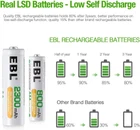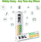 WARNING : California’s Proposition 65 Product Description Homebasic Battery Combo - 12 Counts AA Batteries with 12 Counts AAA Rechargeable Batteries EBL - Professional Care and Low Self Discharge Professional and reliable on AA/AAA/C/D/9V/Alkaline Batteries/Cordless Phone Rechargeable Batteries and Battery Chargers. EBL always persistently providing high quality and services for everyone. Features of EBL Rechargeable Batteries EBL batteries devote to low self-discharge technology, holds 80% power after 3 years while general rechargeable batteries will lose all the power if not using for a long time. The batteries don’t contain Hg/Cd/Pb, no pollution to the environment. The batteries made with super lattice alloy, high retention rate of electric charge, low loss of capacity, excellent discharge performance at high temperature, 1200 Tech, super long life. The batteries are 0.1V higher than others when full charged, more suitable for long time use. Excellent charge/discharge performance, the batteries will keep a high quality after 3-5 times charge & discharge when used in the first time or long time no used. Precharged 15%~20% of capacity by solar energy. Could be used when you get it. Package included: 12x 2800mAh AA rechargeable Ni-MH batteries 12x 1100mAh AAA rechargeable Ni-MH batteries 6x AA/AAA battery storage cases