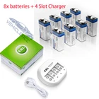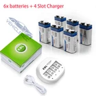 For 9V Li-ion Rechargeable Battery Battery Feature: 1. 100% New Brand and high quality. 2. No memory effect. 3. Recharged up to 1200 times. 4. These 9V Li-ion Rechargeable Batteries can work in Toys, Digital Camera, smoke detectors, electronic barking dog controller, wireless microphone, TENS/EMS unit, etc. Battery Specifications: 1. Capacity: 600mAh 2. High voltage: 9V 3. Chemistry: Li-ion 4. Model: 6F22 For 4 Slot 9V Battery Charger 1.Applicable for all power voltage globally. 2.The charger will charge the battery when plug in,and the indicator light display in Red. 3.This charger is for using indoor only,keep it away from miost and heat. 4.This charger uses the MCU control technology,providing the constant current and constant voltage safety model. 5.Fit for : 6F(9V)lithum,NI-MH,NI-cd rechargeable. Specifications: 1.input:USB DC 5V 2.Output:9V DC 90MA 3.No Load Power Consumtion:1W MAX 4.Full Load power consumtion:5W MAX 5.Battery Chrge Rate:>90% 6.Size:90mm x 60mm x 38mm 7.Weight:46g Package Include: According to what you choose USB 9V Rechargeable batteries Li-ion 9V Rechargeable Batteries NIMH 9V Rechargeable Batteries Alkaline 9V Non-Rechargeable Battery Type Li-ion USB 9 Volt (Upgraded) Standard Li-ion 9Volt NIMH 9Volt Alkaline 9Volt Non-Rechargeable Capacity 5400mWh 600mAh 280mAh 600mAh Voltage 9Volt 9Volt 9Volt 9Volt Applicable smoke/fire alarms, wireless microphone, toys, GPS, home security devices, medical devices etc. wireless microphone, smoke/fire alarms, remote controller detector, speaker, LED lighting cameras, flash light, toys, remote controls, mp3 players smoke detectors & multimeter smoke alarm, smoke detector, electronic toys On Dec 4, 2024 at 01:14:41 PST, seller added the following information: