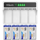 For 9V 600mAh 6F22 Li-ion rechargeable battery Product Features Super Long lasting: HiQuick 9 volt li-ion batteries adopt advanced energy gathering ringwith high capacity of 600mAh, which keep longer lasting for smoke alarm detector. Improved low self-discharge( (LSD): HiQuick 9 volt li-ion batteries have low self-discharge( (LSD), you don't worry about battery damage or undurable due to self-discharge. Reliable battery: HiQuick 9 volt li-ion batteries with overcharge, over-discharge, over-current and short circuit protection. It can provide more reliable power for your device. Without memory effect: HiQuick 9 volt li-ion batteries are no memory effect, which are more durable than ordinary batteries. It can be recharged many times (depending on the device used, the battery life is different) and it’s a great idea to replacement for the normal battery. By reusing batteries, you are reducing your carbon footprint and the waste caused by disposable one. Widely Application: HiQuick 9 volt li-ion batteries could work well with a variety of devices, such as wireless microphone, smoke/fire alarms, remote controller detector, speaker, LED lighting devices, walkie-talkie, multimeter and so on. Product Specification * Capacity: 600mAh * Battery Type: Li-ion * Voltage: 9V * Net Weight: 60g per piece For 4 Slot Battery Charger: Product Features 1. 100% Brand new high quality. 2. USB 5V input,easy carry for travel, suitable for the global. 3. Each slot independent charge, the corresponding LED light charging indicator. 4. Only charging for 1-4pcs 9V Lithium batteries,do not charging for other type of batteries. 5. When the Battery is charging the LED turn Blue,and the battery is fully charged (the Voltage to achieve 8.1V), the LED to turn off. Product Specification 1. Input: DC 5V USB 2. Output: DC 8.4V 400mA(1 9v battery) DC 8.4V 150mA(4 9V battery) 3. No Load Power Consumtion: 1W MAX 4. Full Load power consumtion: 5W MAX 5. Battery Chrge Rate:>90% 6. Size: 98mm x 92mm x 39mm 7. Weight: 91g 8. Slots: 4 Slots For 9V LCD battery charger-HiQuick Product Features 1. 100% Brand New and High Quality. 2. Wide voltage input, suitable for the global. 3. Each slot independent charge, the corresponding LED light charging indicator. 4. Only charging for 1-4pcs 9V Lithium batteries,do not charging for other type of batteries. 5. When the Battery is charging the LED turn Blue,and the battery is fully charged (the Voltage to achieve 8.1V),the LED to turn off. Product Details 1. Input:100-240V AC 50/60Hz 2. Output: DC 8.4V 400MA(1 9v battery) DC 8.4V 150mA(4 9V battery) 3. No Load Power Consumtion: 1W MAX 4. Full Load power consumtion: 5W MAX 5. Battery Chrge Rate:>90% 6. Size: 98mm x 92mm x 39mm 7. Weight: 91g 8. For Fit: 6F22(9V)Li-ion rechargeable battery. Compatible With 9V 6F22 Li-ion/ Ni-Mh/Ni-Cd Rechargeable Batteries For Non-Rechargeable 9V 6LR61 Alkaline Battery (Blue Battery) Product Specification * Capacity: 600mAh * Battery Type: alkaline * Voltage: 9V * Net Weight: 48g per piece Note:Blue Battery is Non-Rechargeable .pls make sure you want it before order. Package in cluded: According to your choice USB 9V Rechargeable batteries Li-ion 9V Rechargeable Batteries NIMH 9V Rechargeable Batteries Alkaline 9V Non-Rechargeable Battery Type Li-ion USB 9 Volt (Upgraded) Standard Li-ion 9Volt NIMH 9Volt Alkaline 9Volt Non-Rechargeable Capacity 5400mWh 600mAh 280mAh 600mAh Voltage 9Volt 9Volt 9Volt 9Volt Applicable smoke/fire alarms, wireless microphone, toys, GPS, home security devices, medical devices etc. wireless microphone, smoke/fire alarms, remote controller detector, speaker, LED lighting cameras, flash light, toys, remote controls, mp3 players smoke detectors & multimeter smoke alarm, smoke detector, electronic toys