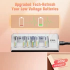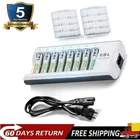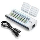Product Description EBL Battery Charger with AAA Rechargeable Batteries Ni-MH 800mAh (Upgrade Charger) EBL New Version of the Classic 808 Charger -Upgrade individual AA AAA Ni-MH Ni-Cd charger - Compatible: All Brand AA and AAA nimh nicd rechargeable batteries (DO NOT charge alkaline or Lithium batteries) - Individual 8-Bay battery Charger: Freely charge 1-8 pcs aa or aaa rechargeable batteries at one time. - Independent LED indicators : Red Light on (charging); Green Light(fully charged); Red Flashing (Bad or non-rechargeable batteries) - Gentle smart LED indicator shows the charging statues, more comfortable light on night. - Auto shut off when charging complete, protect the batteries from over-charge. - Refresh your low voltage batteries and detect bad batteries when charging. - AC 100-240V input, global usage, come with a AC plug cable, charging faster and less power loss than USB cable charging. Features of EBL AAA Rechargeable Batteries - Improved low self discharge makes it still maintain 80% of capacity after 3 year of non-use. - The batteries don’t contain Hg/Cd/Pb, no pollution to the environment. - The batteries made with super lattice alloy, high retention rate of electric charge, low loss of capacity, excellent discharge performance at high temperature,1200 Tech, super long life. - The batteries are 0.1V higher than others when full charged, more suitable for long time use. - Excellent charge/discharge performance, the batteries will keep a high quality after 3-5 times charge & discharge when used in the first time or long time no used. - Precharged 15%~20% of capacity by solar energy. Could be used when you get it. Package Included: 8 X EBL 800mAh AAA rechargeable batteries 1 X Battery Charger 1 X AC adapter cable 2 X Battery storage cases