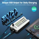 For 8 Slots Charger Only About this item [ UPGRADED AA AAA Battery Charger ] - The household battery charger can charge All Brands 2/4/6/8 Ni-MH Ni-CD aa rechargeable batteries and aaa battery, more convenient and easy to use household battery charger for daily usage. [ Convenient 2 USB Ports for Phone Charging ] - The smart charger comes equipped with 2 USB port ( USB 1:5V/2.1A USB 2: 5V/1.0A) for charging a smartphone, iPod or other USB device. The batteries charger can charge rechargeable battery and phone at the same time. [ Intelligent battery charger ] - Stable charge aa battery aaa battery. Automatically stop charging when detecting improper input voltage, defective or short circuit or non rechargeable batteries. [ Safety Guarantee ] - Advanced MCU control and -∆V function, over-heat and over-current protection, short-circuit protection, non-rechargeable and defective battery detection. [ Easy to read LED light ] - Designed with clear led light to show the charging status of the aa aaa rechargeable batteries, it is easy and clear for you to understand the process of the charging. For 8x 1100mAh AAA Batteries + 8 Slots Charger Specification; AAA Rechargeable Battery * Capacity: 1100mAh * Voltage: 1.2V * Battery type: AAA R03 * Chemical Composition: Ni-MH * Total Weight: 60g * Quantity: 8 pcs On Jan 8, 2025 at 19:32:18 PST, seller added the following information:
