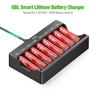 EBL 8 Pack of Rechargeable Lithium AAA Batteries 1200mWh with 8 Bay Smart Battery Charger for AA AAA Lithium Rechargeable Batteries About this item High Capacity Power: 1200mWh AAA 1.5V Li-ion rechargeable batteries, high capacity with 1.5v constant voltage output, ideal for devices with high power consumption, such as wireless mouse, camera, electric toy, remote controlled toy, mouse, flashlight, bathroom scales, medical devices , cordless keyboard and more. Fast charging: Advanced fast charging technology and DC 5V / 2A USB input. Helps you save charging time and extend battery life. 2A input is more convenient for everyday use. Long Lasting Batteries: With Advanced recycle technology, EBL lithium rechargeable batteries has ProCyco technology, helps maximize batteries best power performance while charging. , no memory effect, the batteries could support constant 1.5v voltage until the whole cell is depleted, long lasting in the electronic devices. USB Design: USB input gives you more options to meet your battery needs. It can connect with adapter, power bank, PC and many more 2A USB devices. (Note: only applicable for 2.0A adapter, do not use 1.0A adapter.) Independent Charging: EBL universal battery charger, you can charge any combination of 1-8 pcs AA / AAA lithium ion batteries without having to charge the battery in pairs. Independent Battery Charger Freely charge any number of AA / AAA batteries without pairing. Fast charging saves you more time and energy. 1.5V lithium rechargeable battery 1.Advantages of lithium battery: long service life, no memory effect, low self-discharge. 2.1200mWh high capacity, li-ion cells with high energy density. 3. Equip with the high energy density lithium core could support constant 1.5V voltage output until the whole cell is depleted, protect the device and long lasting. Package Included 1*EBL 8 Bay Lithium Battery Charger 1*Micro USB Cable 8* AAA Lithium Rechargeable Batteries 2*User manual On Feb 16, 2025 at 21:55:57 PST, seller added the following information: