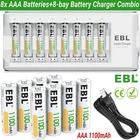 EBL Rechargeable AAA Batteries with Charger, 8 Pack 1100mAh NiMH Triple AAA Batteries and Individual AA AAA Battery Charger About this item AAA Rechargeable Batteries - EBL 1.2V AAA batteries with 1100mAh high capacity for optimal device performance and extended operation. Long Battery Life - Low self-discharge and 1200 Tech ProCyco (Professional Recycling) help maximize the best performance during charging, resulting in our AAA batteries holding power longer and extending their life. Safety Assurance - Ni-MH cell, doesn’t contain Hg/Cd/Pb, makes no pollution to the environment, and using DBCK steel shell which can protect the battery against explosion due to over-pressure. Rechargeable Batteries Charger: EBL upgraded individual charger for aa aaa rechargeable batteries, it can charge 1-8 Ni-MH or Ni-Cd Double AA and Triple AAA batteries, giving you flexibility and versatility. Efficient AC Plug Charging - Faster charging and less power loss than USB cable charging, the AC plug design ensures efficient power delivery. The charger comes with an AC plug cable suitable for use worldwide (100-240V), eliminating the need for additional adapters. Product Description EBL 8 Bay Battery Charger (Upgraded) with AAA Rechargeable Batteries Ni-MH 1100mAh Compatible: Can both charge AA and AAA Ni-MH Ni-Cd rechargeable batteries(Do not charge alkaline or Lithium batteries) How many batteries can be charged at a time: 1-8 AA or AAA batteries together at a time, individual charging slots, don't need to charge batteries in pairs 8 LEDs show the status of charging: Red Light- Charging; Green Light- Fully Charged; Red Flashing- Bad Batteries or Non-rechargeable battery Reasonable Circuit Layout - Worldwide Usage Advanced MCU Control With Reasonable Circuit Layout Negative delta V (- ∆V) cut-off function, automatically cut off when fully charged I nput and Output: Input: AC 100-120V AC 50/60Hz. Worldwide voltage Output: DC 1.2V 1000mA, faster for charging C harging Time Table: 2 to 8pcs AAA 500-1200mAh: 1.5 - 4 hours 2 to 8pcs AA 1300-2800mAh: 1.5 - 6 hours Patent Trickle Charge Mode Unique Trickle Charge Adopting -∆V intellectual cut-off charging method, automatically turn to trickle charge, overheat-detection to prevent over-charging, short circuit protection and reverse polarity protection. Attention: * Please ensure the battery installed is correct: make the +/- pole of the battery is match for the +/- pole of the charger. * Never mix charge different type and different capacity of batteries under the same LED indicator. * Using environment: 0℃ to 40℃, it is normal phenomenon that the battery is warmer than room temperature when charging. * Do not disassemble or reassemble the charger by yourself for safety reason. On Sep 12, 2024 at 13:24:33 PDT, seller added the following information: