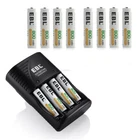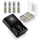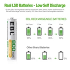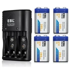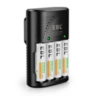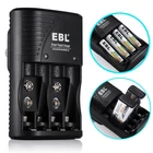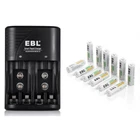 For AA AAA Rechargeable Battery Descriptions: * This is 4 in 1 EBL AA AAA rechargeable NI-MH rechargeable battery, up to 1000 recharge times. Durable for high power demend devices such as Digital Cameras, CD Players, Remote Control Vehicles, Metal Detectors, Pocket Flashlights, PDAs Palm Pilots, Pagers, Game Boys, Children's Toys..etc Features: * 100% Brand new and high quality * It is 4 in 1 EBL AA AAA rechargeable NI-MH replacement battery * The latest lock electric technology are adopted * Nimh environmental protection material * Rechargeable battery, up to 1000 recharge cycles * Excellent high discharge/drain performance * Exact replacement for standard AA AAA size batteries * Superior performance under low temperature condition * Longer in high drain devices than Alkaline batteries * Can be commonly usedd for for high power demend devices such as Digital Cameras, CD Players, Remote Control Vehicles, Metal Detectors, PocketFlashlights, PDAs Palm Pilots, Pagers, Game Boys, Children's Toys, etc Specification: AAA Rechargeable Battery * Capacity: 800/1100mAh * Voltage: 1.2V * Battery type: AAA R03 * Chemical Composition: Ni-MH * Total Weight: 60g * Each four batteries come with one case box AA Rechargeable Battery * Capacity: 2800mAh * Voltage: 1.2V * Battery type: AA R6 * Chemical Composition: Ni-MH * Total Weight: 60g * Each four batteries come with one case box 9V 600mAh Li-ion Rechargeable Battery: Features: 1. Pro-environment. 2. High energy density, long life battery. 3. Recharged up to 1200 times. 4. Relatively long service life. Specification: 1. Battery Type: Rechargeable battery 2. Capacity: 600 mAh 3. Voltage: 9V 4. Chemistry: Li-ion 5. Weight: 60g 6. Model: 6F22 For AA AAA 9V Ni-MH Ni-CD Battery Wall Charger Product Features: 1. 100% New Brand and High Quality. 2. The LED Smart Charger can charge 2 or 4 AA AAA NI-MH/NI-CD and 1 or 2pcs 9V NI-MH/NI-CD Rechargeable Battery individually. 3. Charge Mode: When powered on for about a second, the LED indicator will change from Green to Red, and finally to Green again. During the charging, the LED indicator is Red. And when fully charged, it will turn to Green. Please notice the place of anode and cathode when pit in the batteries and do install the batteries in pairs or in fours in turn. Otherwise, the indicator will not light, and batteries cannot be charged. 4. Warranty: one year 5. Shipping: From US 6.Worldwide voltage for 100-240V 50/60Hz adapter input, can be applied to supplied voltage globally. Product Details: 1. Input: AC 100-240V, 50-60Hz. 2. Output: 2.4V DC for AA/AAA ; 9V DC for 9v battery 3. Dimension:100*67*27 mm 4. Weight: 89 g 5. Color: Black 6. Slots: 9v Slot: 2; AA/AAA Slot: 4 Compatible With 9V Ni-MH Ni-CD Batteries AA Ni-Mh Rechargeable Battery AA Ni-Cd Rechargeable Battery AAA Ni-Mh Rechargeable Battery AAA Ni-Cd Rechargeable Battery Note: This battery charger is used for AA/AAA Ni-MH/Ni-Cd batteries, and 9V Ni-MH/Ni-Cd batteries. The absolute 0V battery can not be charged. Can not charge alkaline or carbon battery. Package Includes: According to what you choose