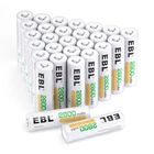 EBL AA Batteries 2800mAh High Capacity Precharged Ni-MH AA Rechargeable Batteries - Pack of 28 Product Details Number of Batteries: 28 AA batteries required. (included) Brand: EBL Battery Cell Composition: NiMH Recommended Uses For Product: Camera,Digital,Radio Unit Count: 28.0 Count Is Discontinued By Manufacturer : No Package Dimensions : 9.02 x 5 x 0.94 inches; 1.98 Pounds Batteries : 28 AA batteries required. (included) Date First Available : December 23, 2019 Manufacturer : EBL Country of Origin : China Best Sellers Rank: #63,450 in Health & Household (See Top 100 in Health & Household) #187 in AA Batteries #187 in AA Batteries Customer Reviews: 4.4 4.4 out of 5 stars 655 ratings Package: 28 counts AA rechargeable batteries, Ni-MH 2800mAh 1.2V with 7pcs battery storage cases 1200 Tech, ProCyco (Professional recycle) helps maximize its best power performance while charging. Batteries come pre-charged partially and can be used immediately out of the package. Suggest to get the batteries fully charged before using. Low self-discharge batteries will remain 80% juice when you leaving it for no use 1 year. Batteries are great for use in household devices such as digital cameras, toys, remote controls, hand held games,2-way radios, PDAs, flashlights, alarm-clocks, LCD-TVs, Toothbrushes, Shavers and portable audio players.
