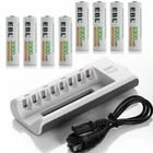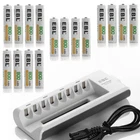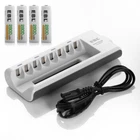 Product Features EBL 808 charger 1. Upgraded Charger (EBL 808U) for EBL 808, individual and smart, could freely charge 2/4/6/8 AA AAA Ni-MH Ni-CD rechargeable batteries,need to charge batteries in pairs, do not charge uneven amount of batteries,4 LEDs show the status of charging, never charge 1 AA + 1 AAA together at 2 slots which are controlled by 1 LED. 2 . Controlled by MCU, automatically stop charging when detecting improper input voltage, defective or short circuit or non rechargeable batteries. 3 . Using -∆V intellectual cut-off charging method, automatically turn to trickle charge, prevent the batteries from over-voltage, over-current or over-heat. . Constant current charging would protect the batteries against current fluctuation and keep using the charger safely. 4 . The ETL Listed Mark is proof that your product has been independently tested and meets the applicable published standard. The ETL Mark is proof of product compliance to North American safety standards. Authorities Having Jurisdiction(AHJs) and code officials across the US and Canada accept the ETL Listed Mark as proof of product compliance to published industry standards. About AA/AAA battery 1. Pro-environment NiMh. 2. NO memory effect. 3. Recharged up to 1000 times. 4. High capacity 800mah-1100mah -2300mah-2800mah for relatively long service life. 5. 100% New Brand and high quality. 6. Superior performance under low temperature condition. Product Details White 8slots charger 1. Input: AC 100-120V MAX: 4A 2. Output: 2.4V DC 180mA 3. No Load Power Consumption: 1W MAX 4. Full Load power consumption: 28W MAX 5. Battery Charge Rate: >90% 6. Size: 7.2 x 3.7 x1.1 inch 7. Weight: 5.9 oz 8. Slots: 8-Slots AA & AAA Battery 1. Voltage: 1.2V 2. Capacity: AA(2800mAh 2300mAh) AAA(1100mAh 800mah) for choose 3. Battery Size: AA or AA A 4. Chemistry type: Hight capapcity NiMH 5. Type: Rechargeable 6. Brand: EBL Package: see dropdown menu On Jan 13, 2025 at 00:25:29 PST, seller added the following information: