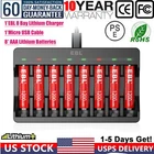 EBL 8 Pack of Rechargeable Lithium AAA Batteries 1200mWh with 8 Bay Smart Battery Charger for AA AAA Lithium Rechargeable Batteries About this item High Capacity Power: 1200mWh AAA 1.5V Li-ion rechargeable batteries, high capacity with 1.5v constant voltage output, ideal for devices with high power consumption, such as wireless mouse, camera, electric toy, remote controlled toy, mouse, flashlight, bathroom scales, medical devices , cordless keyboard and more. Fast charging: Advanced fast charging technology and DC 5V / 2A USB input. Helps you save charging time and extend battery life. 2A input is more convenient for everyday use. Long Lasting Batteries: With Advanced recycle technology, EBL lithium rechargeable batteries has ProCyco technology, helps maximize batteries best power performance while charging. , no memory effect, the batteries could support constant 1.5v voltage until the whole cell is depleted, long lasting in the electronic devices. USB Design: USB input gives you more options to meet your battery needs. It can connect with adapter, power bank, PC and many more 2A USB devices. (Note: only applicable for 2.0A adapter, do not use 1.0A adapter.) Independent Charging: EBL universal battery charger, you can charge any combination of 1-8 pcs AA / AAA lithium ion batteries without having to charge the battery in pairs. Independent Battery Charger Freely charge any number of AA / AAA batteries without pairing. Fast charging saves you more time and energy. 1.5V lithium rechargeable battery 1.Advantages of lithium battery: long service life, no memory effect, low self-discharge. 2.1200mWh high capacity, li-ion cells with high energy density. 3. Equip with the high energy density lithium core could support constant 1.5V voltage output until the whole cell is depleted, protect the device and long lasting. Package Included 1*EBL 8 Bay Lithium Battery Charger 1*Micro USB Cable 8* AAA Lithium Rechargeable Batteries 2*User manual