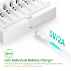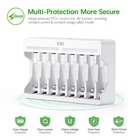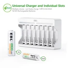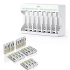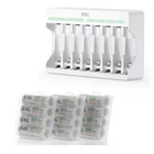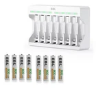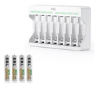 For Battery Descriptions: * This is 4 in 1 EBL AA AAA rechargeable NI-MH rechargeable battery, up to 1000 recharge times. Durable for high power demend devices such as Digital Cameras, CD Players, Remote Control Vehicles, Metal Detectors, Pocket Flashlights, PDAs Palm Pilots, Pagers, Game Boys, Children's Toys, etc Features: * 100% Brand new and high quality * It is 4 in 1 EBL AA AAA rechargeable NI-MH replacement battery * The latest lock electric technology are adopted * Nimh environmental protection material * Rechargeable battery, up to 1000 recharge cycles * Excellent high discharge/drain performance * Exact replacement for standard AA AAA size batteries * Superior performance under low temperature condition * Longer in high drain devices than Alkaline batteries * Can be commonly usedd for for high power demend devices such as Digital Cameras, CD Players, Remote Control Vehicles, Metal Detectors, PocketFlashlights, PDAs Palm Pilots, Pagers, Game Boys, Children's Toys, etc * Each 4 batteries come with 1 case box Specification: AAA Rechargeable Battery * Capacity: 800mAh * Voltage: 1.2V * Battery type: AAA R03 * Chemical Composition: Ni-MH * Total Weight: 60g * Quantity: 4/8/12/16/pcs AA Rechargeable Battery * Capacity: 2300mAh * Voltage: 1.2V * Battery type: AA R6 * Chemical Composition: Ni-MH * Total Weight: 60g * Quantity: 4/8/12/16pcs For Battery Charger Features: Individual Charging Slots - EBL C9010N AA/AAA charger allows you to charge any number of AA/AAA NIMH Ni-CD rechargeable batteries, don’t have to charge your battery in pairs. Ultra friendly for the one-battery needed device. Fast Charging Technology - Less than 6 hours to fully charged 1- 8pcs AA 2800mAh batteries(Out put: 450mA). 2 Hours less charging time than other name-brand chargers. Convenient USB Interface Design - USB Input with multiple Charging Options, connect the charger to 5V USB devices like power bank, adapter,(NOTE: Fit for 2.0A adapter only, DO NOT use 1.0A adapter)easy for daily use, more convenient. Smart Battery Charger - Bad and non-rechargeable batteries all can be detected which LED shows Red light then off. Smart LED indicates the charging progress status, Keep Red - Charging status, Keep Green - Fully charged. Safety Guarantee - Advanced MCU control and -∆V function, over-heat and over-current protection, short-circuit protection, non-rechargeable and defective battery detection. Specification: Input : DC 5V 2A Output : DC 1.2V AA: 1800mA AAA : 900mA Charging Time Table: (Capacity: AA 2800mAh AAA 1100mAh) AA*1/2 1800mA 1.5hours AA*3/4 900mA 3hours AA*5/6/7/8 450mA 6hours AAA*1/2 900mA 1.2hours AAA*3/4 450mA 2.4hours AAA*5/6/7/8 225mA 4hours Much Faster than other name-brand AA AAA Battery Chargers Package Included: as your choose