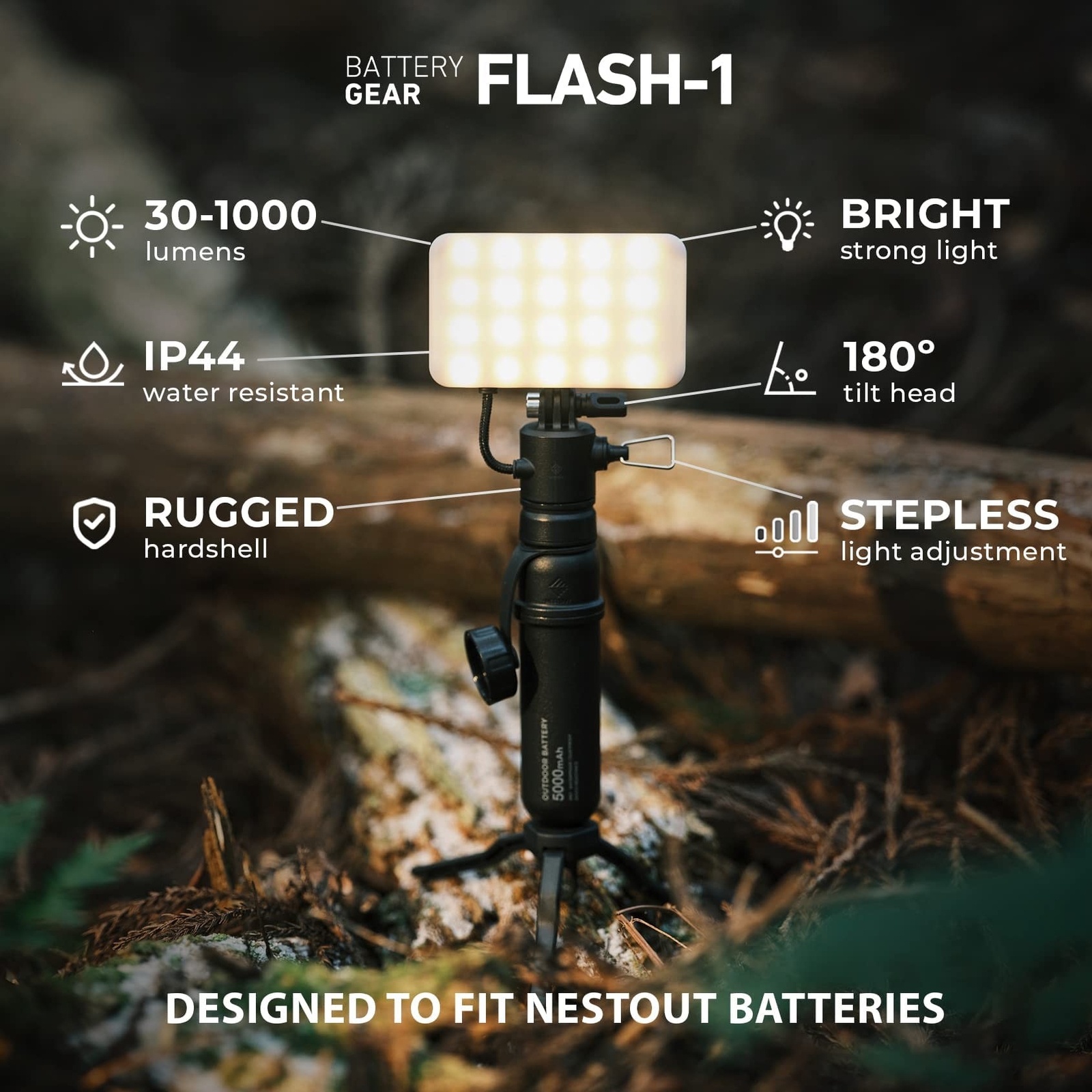 ELECOM NESTOUT Portable Charger and Lamp, 15000mAh Outdoor Battery Power Bank, 32W USB-C Fast Charging PD, Battery and Light for Camping, 1000 Lumen LED Bright Light Flash-1 - Black Product Details Connector Type: USB Type C Brand: ELECOM Battery Capacity: 15000 Milliamp Hours Special Feature: Fast Charging,Portable Charger,Waterproof Recommended Uses For Product: Tablets Special features: Fast Charging,Portable Charger,Waterproof Other display features: Wireless Date First Available: May 31, 2023 BUNDLE ITEMS: Includes 15000mAh Battery, FLASH-1 light, mini tripod, and carrying pouch. FAST CHARGING USB-C PD - All NESTOUT batteries come equipped with fast-charging USB-C ports with USB Power Delivery to quickly charge electronic devices like phones, earbuds, tablets, and more. WATERPROOF & DUSTPROOF IP67 RATING (Battery) - Perfect for outdoor activities in various climates and weather conditions, the batteries are waterproof and dustproof and can handle submersion for up to 30 minutes at a depth of 1 meter. SHOCKPROOF HARD SHELL BODY - Engineered to support extreme activities throughout the year, the lithium ion batteries are carefully wrapped in a silicone cushion to minimize the transmission of vibrations and shocks. Tested and approved with the US Military Standard MIL-STD-810G Certified Drop Test. SMART POWER DELIVERY - The battery automatically detects the energy requirements of plugged-in devices and will allocate more energy to power-hungry devices.