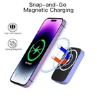 【Wide Compatibility】: This Mag-safe power bank with a robust 10000mAh battery is designed for iPhone 15, iPhone 15 Plus, iPhone 15 Pro, iPhone 15 Pro Max, iPhone 14, iPhone 14 Plus, iPhone 14 Pro, iPhone 14 Pro Max, iPhone 13, iPhone 13 mini, iPhone 13 Pro, iPhone 13 Pro Max, iPhone 12, iPhone 12 mini, iPhone 12 Pro, and iPhone 12 Pro Max. Ensure alignment with the magnetic suction, usable without cases or with Mag-safe cases 【Powerful Magnetic Hold】: Featuring the latest magnetic technology (stronger magnets and nano adsorption), this Mag-safe power bank securely attaches to the back of your iPhone 15/14/13/12 series. It provides up to 15W wireless charging, allowing you to charge your phone anytime, anywhere without the hassle of wires, making it perfect for travel, vacations, and camping 【Compact and Convenient Design】: The slim size of this Mag-safe power bank ensures it fits easily into your pocket, even with skinny jeans. Weighing only 120g, it allows for gentle use with your iPhone without blocking the camera 【Fast Wireless and Wired Charging】: This Mag-safe power bank supports 5W, 7.5W, 10W, and 15W max wireless charging and up to 20W USB-C output. It also supports up to 12W Lightning input and 18W USB-C input. You can charge two devices simultaneously, eliminating wait times. The soft silicone material protects your phone from damage while charging, ensuring faster charging speeds 【Enhanced Safety Features】: Equipped with 8 built-in low-temperature ice cores, this Podoru Mag-safe charger offers comprehensive multi-protect safety systems including temperature control, overcharge protection, and short-circuit protection. The multi-protect safety system ensures your devices are shielded from potential hazards, providing a worry-free charging experience