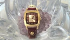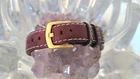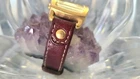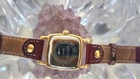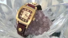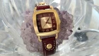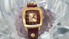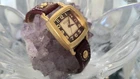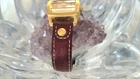 This Ecclissi wristwatch boasts a beautiful gold tone 27mm square case with a smooth gold tone bezel. The watch features a red dial with Arabic numeral indices and a mineral crystal display. The watch is water-resistant and has a push/pull crown for easy adjustment. The watch comes with a two-piece white leather strap with a buckle closure, suitable for wrist sizes between 7.1-7.25 inches. The watch is powered by a quartz movement and has a 12-hour dial with a seconds hand. This vintage watch was manufactured between 2000-2009 and has a reference number of 80245. Very clean new battery runs and keeps time perfectly. (C8)