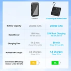 Portable Charger with Built in Cables :1 USB Type C and 1 Lightning durable braided cables. After enduring 10,000 bend tests, it remains fully functional. With 2 charging ports (1 USB-A and 1 USB-C). This powder bank can simultaneously power up to 4 devices Chargers for Multiple Devices: Widely compatible with iPhone 16/15/14/13/12/11 series, iPad series, Samsung S23,S22,S21,S20 series and other cell phones, tablets or electronic devices. It charges iPhone 15 PRO about 4.5 times, Samsung Galaxy S23 Ultra 2.8 times, Google Pixel 7 about 3.2 times 33W Fast Charging: High-capacity 77Wh portable power bank, supporting PD 3.0 and QC 4.0 protocol. 3X faster than conventional chargers. When charging the device with USB-C, the maximum output power is 33W.The power bank can be charged via a USB-C cable or USB-C input port, with a maximum input power of 30W Lightweight and Travel Essentials: 20,000mAh portable battery with dimensions around 3.74 x 3.54 x 1.18in and weighing just 0.75lb. Using the new high-density polymer battery, it has a larger capacity under the same volume. Minimalist LED digital screen displays 0-100% battery level.Easy to carry, compliant with TSA standards, perfect for long trips Intelligent Safety Protection: Equipped with high-quality lithium-polymer cells and advanced multi-protection system microchips, it safeguards against overcharging, over-discharging, overvoltage, overcurrent, and short circuits. The battery is designed for over 1000 recharge cycles throughout its lifespan.
