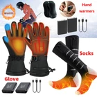 1 Pair electric heated gloves Specifications: 2x Palm leather model gloves + 2x 5V/6000mAh Power bank + USB charging cables Use Category: Skiing/Leisure/Sports Function: waterproof, non-slip, touch screen, warm, windproof, self-heating Size: XL Season: Winter Applicable object: middle and high consumption crowd Applicable age group: adult Fabric Name: Polyester Main fabric composition: polyester (polyester fibre) Charging treasure: 5V 6000 mAh, constant temperature 2.5-6 hours Use Scene:Skiing, cycling, outdoor and so on Packing list: Gloves *2 Charging treasure *2 USB cable *1 ============================================================================================ 1 Pair electric heated socks Features: 【Full Foot Coverage Heating】Hidden heating pad covers the entire area from the toes to the heel delivering warm blood to the whole body through the blood vessels. Also features a newly designed inline heating pad and almost imperceptible ultra-thin wire dramatically reducing the sensation of foreign bodies on the bottom of the foot 【Swift Heat Performance】Powered by high-capacity 5V 5000mAh battery electric socks deliver rapid and efficient heating. Surpassing traditional solutions they generate more abundant and even warmth ensuring consistent comfort in cold outdoor conditions 【4 Heating Levels】Choose your idea l warmth with four adjustable temperature settings. Equipped with two independent 5V 5000mAh rechargeable batteries, you'll enjoy 3-8 hours of continuous heating. Select from three temperature options (45/55/65°C) to adapt to various outdoor environments(Press 2S to start heating) 【Enhanced Fit & Durability】Crafted from supple Modal fabric heated socks offer exceptional elasticity and comfort. The reinforced heel is made from wear-resistant and anti-pilling mink suede and wool ensuring enduring quality 【Free Movement】Rechargeable battery has a separate fixed inner pocket and the opening has been upgraded to an elasticated fixation. Even when skiing, skating, cycling and other strenuous activities, the battery will not fall out. so you can move freely without any burden Electric heated socks for men and women are an excellent choice for outdoor activities such as skiing, hiking, hunting, snow shoveling, ice fishing, horseback riding, motorcycling, cycling and other cold-weather pursuits. The exquisite packaging makes them an ideal gift Main size: toe to heel 21cm, heel to sock 33cm Packing list: Box *1 Instruction manual *1 Socks *2 Battery *2 Charging cable *1 =========================================================================== 1 Pair Hand Warmers About this item: Compact and Portable: Perfectly sized to fit in your pocket or bag, our hand warmers provide on-the-go warmth without bulk. Three Adjustable Temperature Levels: Choose from low, medium, or high heat settings to customize your warmth experience and stay comfortable in any weather. Convenient LED Disp lay : Easily monitor your chosen temperature setting with the clear, intuitive LED display. Value Pack of 2: Comes with two hand warmers, so you can keep one in your bag and one at home, or share the warmth with a friend or loved one. Ideal Gift Choice: A thoughtful and practical gift for anyone who loves outdoor activities or needs extra warmth during the colder months.