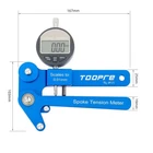 Name:Bicycle Spoke Tensiometer Model:TL-P10(Mechanical Model),TL-P11(Electronic Model) Material:Aluminum Alloy+Stainless Steels Color:Blue Package Size:205X195X60mm Usage:Determines spoke tension for round and flat spokes as well as for various finished wheelsets. Product Name: Spoke Tensiometer Material: Aluminum alloy Model: Mechanical watch TL-P10, electronic watch TL-P11 Weight: 513g/set for mechanical models, 565g/set for electronic models Packaging: Color box (including 1 tension meter, 1 Chinese and English instruction manual, 1 tension comparison table, and 1 spoke wrench)