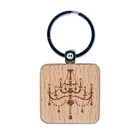 Elegant Candle Chandelier Engraved Wood Square Keychain Tag Charm