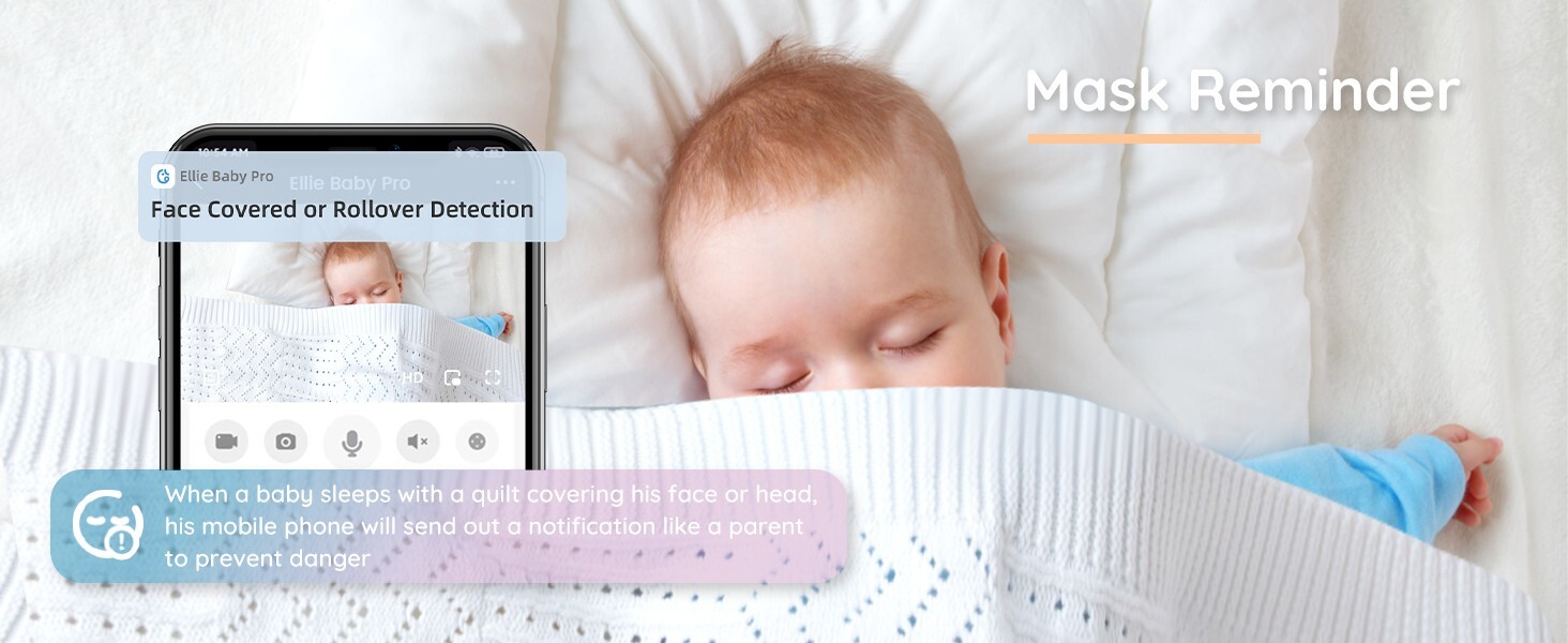 Keep a watchful eye on your little one with the Ellie Baby Pro camera. This digital camera features AI detection, making it a reliable tool for monitoring your baby's health and safety. With its covered face alert, you can rest assured that your baby is breathing. The Ellie Baby Pro is perfect for parents who want to keep a close eye on their little ones without compromising on comfort and safety. Its compact design makes it easy to use and move around, while its advanced features provide you with all the tools you need to monitor your baby's vital signs. Get peace of mind knowing that your baby is always watched and cared for. Ellie Baby Monitor has 99% accurate cry recognition and automatically plays lullaby or mom's recordings to soothe your babies. With real-time TEMPERATURE and HUMIDITY, 2K Ultra HD & Infrared Night Vision, 360 Rotation, 2-way Talk, the Ellie Baby Monitor is the perfect solution for keeping your infant and toddlers safe and happy. Incl. wall Mount and Crib Clamp, and you get instant alerts on your smartphone with our FACE COVERED ALERT feature, ensuring your baby's safety while they sleep. Keep track of your baby's growth and activities with our Auto Photo Capture and Sleep Tracking features On-device Ai smart baby monitor is hacker-proof. Split-screen on the phone app, allows you to watch different kids at the same time.