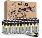 32-pack of Energizer Alkaline Power AA Batteries, Double A Alkaline Batteries. Long lasting batteries provide dependable power for everyday use and emergency situations. Count on these AA batteries to power a wireless mouse, game controllers, flashlights, thermometers, smart home devices, VR controllers and more. Lasts up to 10 years in storage for alkaline AA batteries that provide peace of mind in everything from emergency situations to playtime. Includes recycled materials *Steel up to 10% Recycled, excluding 9V. Designed to protect against damaging leaks for up to two years after fully used. Trust in the Energizer brand for reliable power and performance in any situation, including hurricane supplies and kits.
