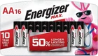Power the devices you love with Energizer MAX Alkaline AA Batteries. These Energizer batteries fuel the technology that helps you live, work and play, whether you need remote batteries, clock batteries, or backup batteries for your child's favorite toys and games. Energizer's No. 1 longest-lasting MAX, these double A batteries keep your favorite devices running longer. Powerseal Technology helps protect your devices against damaging leaks for up to two years after these AA Energizer MAX Batteries are fully used. With a shelf life of up to 10 years in storage, this AA battery pack is ready to keep your devices operating when you need them most. Depend on the power of Energizer MAX AA Batteries to power your everyday electronics. Up to 50% longer lasting than basic alkaline batteries AA size in demanding devices of Energizer MAX Alkaline AA Batteries 16 pack of Energizer MAX Alkaline AA Batteries The Double A power you depend on for your devices, from clock batteries and remote batteries to everyday electronics These AA batteries hold their power for up to 10 years while in storage Energizer AA batteries are designed to protect your devices against damaging leaks for up to two years after fully used Feel confident knowing you have the long-lasting power and protection you expect from Energizer