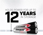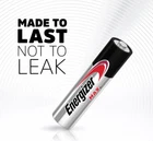 Long-lasting power and innovation is what the Energizer MAX family is all about. Meet our longest-lasting AA and AAA Energizer MAX batteries yet. They also hold their power for up to 10 years while in storage, so you have power when you need it most. Plus, the AA and AAA sizes are designed to protect devices from leakage of fully used batteries up to 2 years. So, when it comes to toys, digital cameras, and other valuable devices, you can feel confident knowing you have the long-lasting power and protection you expect from Energizer. *Energizer will repair or replace, at our option, any device damaged by leakage from Energizer MAX Alkaline batteries either during the life of the battery or within two years following the full use of the battery. If exact replacement is not available, devices may be replaced with a product of comparable market value at the time of claim. Leaking battery and damaged device must be provided to Energizer as proof of claim. Energizer reserves the right to deny claims of damage caused by misuse or modification of the batteries or device. 20-pack of Energizer MAX alkaline AAA batteries Our #1 Longest Lasting MAX AAA battery powers everyday devices Non-stop energy for your non-stop family’s must-have devices—think toys, flashlights, wireless mice, remotes, smart home devices, thermometers and more Holds power up to 10 years in storage—so you’re never left powerless From the makers of the #1 longest lasting AA battery (Energizer Ultimate Lithium), and the Energizer Bunny