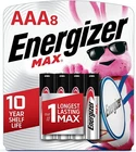Energizer AAA Batteries, Max Alkaline, (Pack of 8) Description: Long-lasting power and innovation is what the Energizer Max family is all about. Meet our longest-lasting AA and AAA Energizer Max batteries yet. They also hold their power for up to 10 years while in storage, so you have power when you need it most. Plus, the AA and AAA sizes are designed to protect devices from leakage of fully used batteries up to 2 years. So, when it comes to toys, digital cameras, and other valuable devices, you can feel confident knowing you have the long-lasting power and protection you expect from Energizer. Energizer will repair or replace, at our option, any device damaged by leakage from Energizer MAX Alkaline batteries either during the life of the battery or within two years following the full use of the battery. If exact replacement is not available, devices may be replaced with a product of comparable market value at the time of claim. Leaking battery and damaged device must be provided to Energizer as proof of claim. Energizer reserves the right to deny claims of damage caused by misuse or modification of the batteries or device. Our 1 longest lasting Max AAA battery powers everyday devices Leak resistance construction protects your devices from leakage of fully used batteries for up to 2 years. Power for your nonstop family’s must have devices like toys, flashlights, clocks, remotes, and more Holds power up to 10 years in storage so you’re never left powerless From the makers of the 1 longest lasting AA battery (Energizer Ultimate Lithium), and the Energizer Bunny Please contact us for further questions or inquiries: Monday - Friday 9:00 AM - 4:00 PM Happy Shopping!