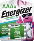 Energizer Rechargeable AAA Batteries, Recharge Power Plus Triple A Battery Pre-Charged, 4 Count About this item 4 pack of Energizer Power Plus Rechargeable AAA Batteries, Triple A Batteries Rechargeable Energizer AAA batteries offer up to a 5 year battery life for long lasting AAA cell batteries Energizer rechargeable batteries save money when you use them with an Energizer Battery Charger NiMH AAA batteries made with 15% recycled materials and the rechargeable batteries are designed to prevent leaks Use AAA rechargeable batteries as camera batteries and in game systems and other devices for convenient use with less waste Each 800 mAh AAA rechargeable battery can be charged hundreds of times for lasting power