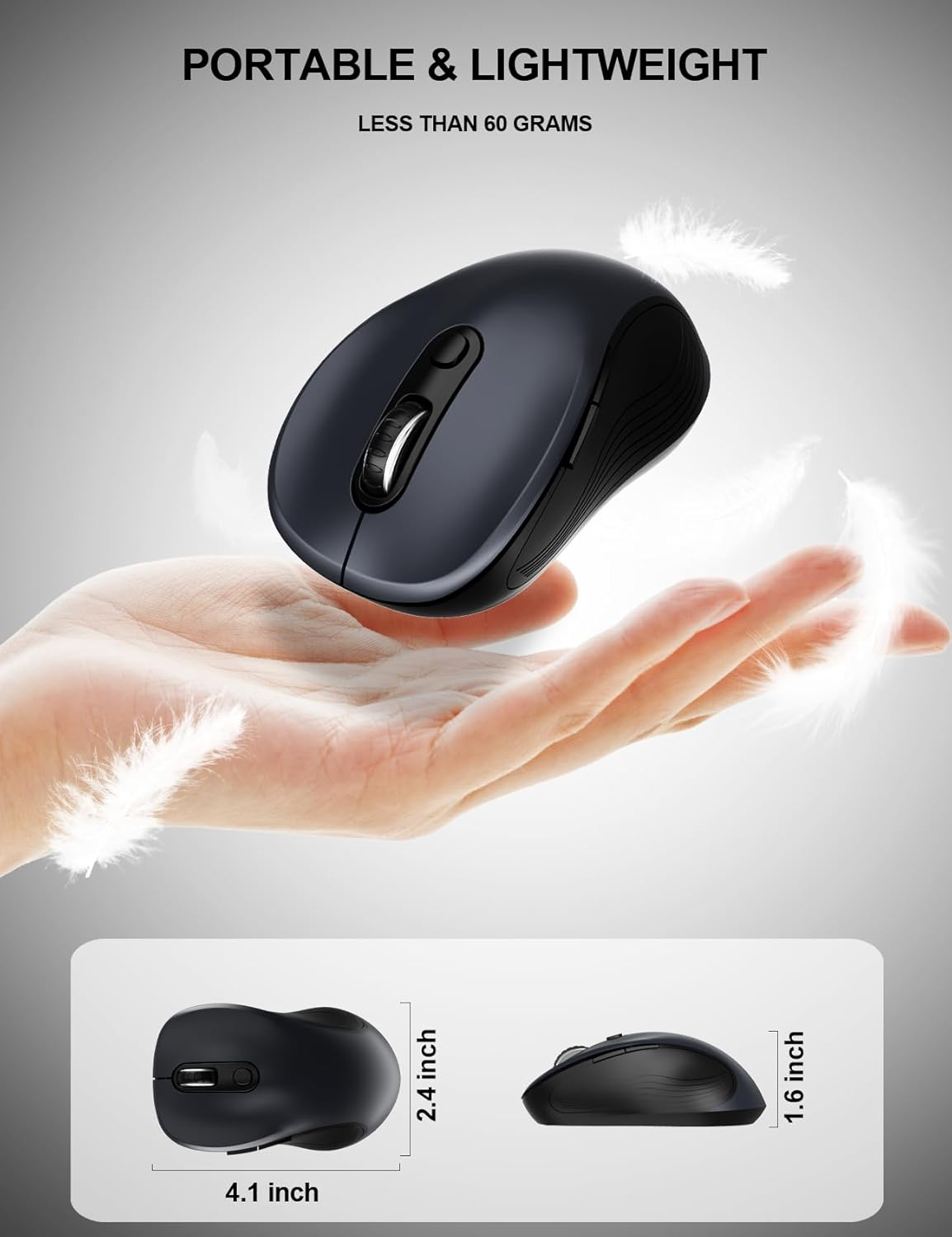 Fast Shipping On All Items 30 Days Money Guarantee Customer Support Excellent Service 100% Satisfaction Satisfaction Guaranteed Wireless Mouse for Laptop 2.4GHz Ergonomic Computer Mouse with Back & Forward... Specification Item model number -modelnumber Color Gray Product Dimensions 4.1 x 2.4 x 1.6 inches Batteries 1 AA batteries required. Item Weight 0.63 ounces Connectivity Technology USB Movement Detection Technology Optical Special Feature function(f) {var _np=(window.P._namespace("DetailPageProductOverviewTemplatesJava"));if(_np.guardFatal){_np.guardFatal(f)(_np);}else{f(_np);}}(function(P) { P.when('A').execute(function(A){ A.on('a:truncate:po-attribute-truncate-3:updated', function(data) { var isTruncated = !data.truncateInstance.getIfTextFits(); var seeMoreElement = document.getElementById('po-attribute-see-more-id-3'); if(seeMoreElement) { seeMoreElement.style.display = isTruncated ? '' : 'none'; } }) }); })); Wireless, Portable, Lightweight, Ergonomic Design, 3 levels tracking speed, Back & Forward Buttons See more 2.4 inches x 4.1 inches x 1.6 inches. Weight: 0.63 oz Item Description Ergonomic Design, All-day Comfort. This wireless mouse features a streamlined, curved design that follows the natural curves of your hand. Skin-friendly silicone and plastic on the sides provide a comfortable grip. Significantly reduces stress on thumbs and wrists when in use. Multi-function & Efficiency. 6 efficient buttons for excellent productivity, convenient forward/back buttons for increased work efficiency. 3 levels of tracking speed (800, 1200/1600) and 50 million keystrokes tested, making every click precise and accurate. Plug and Play. 2.4GHz wireless technology can provide a stable signal. The use range is up to 33 feet, ensuring no delay or dropout. No driver installation is required—just plug the USB receiver (stored on the back of the mouse) into your device, and it's ready to use. Energy Saving & Eco-friendly. Only 1 AA battery lasts up to 16 months. It enters sleep mode after you leave for 1 minute, double-clicking any button to wake it up. Reduces the need to replace batteries. Wide Compatibility. Compatible with all Windows system versions, Linux, Chrome OS, and OS. Fits desktops, laptops, PC,books, Chromebook, and computers. USB A to Type C adapter is ready to adapt to your system. About us We offer the best prices around on high quality products. Our E-store includes media such as books, movies, music and games while offering electronics, toys, sporting apparel, clothing, tools, general home, garden items and more. Shipping We are always working hard to ensure your package arrives as soon as possible. Please understand that some factors like weather, high postal traffic, and the performance of shipping companies are outside of our control. We offer free shipping to the lower 48 states and ship within 2-3 business days of payment, usually sooner. We do not accept P.O. Boxes. Please provide a physical address. For shipping outside of the continental USA, we only use eBay's Global Shipping Program.The item is shipped to KY and then sent to the rest of the world. International customers are responsible for all duties and taxes. Continue to check out to calculate costs for shipping the item to your country. Messages regarding eBay's Global Shipping Program MUST be directed at eBay EXCLUSIVELY. Returns We offer a 30-Day Return Policy on items in which you are not completely satisfied with. You have the option of a full-refund or an exchange of the item. No returns are available on items shipped outside of the USA Satisfaction We try over very best to make sure every customer is completely satisfied. If there's a problem, message us! We're happy to help. Payment Options Shop With Confidence