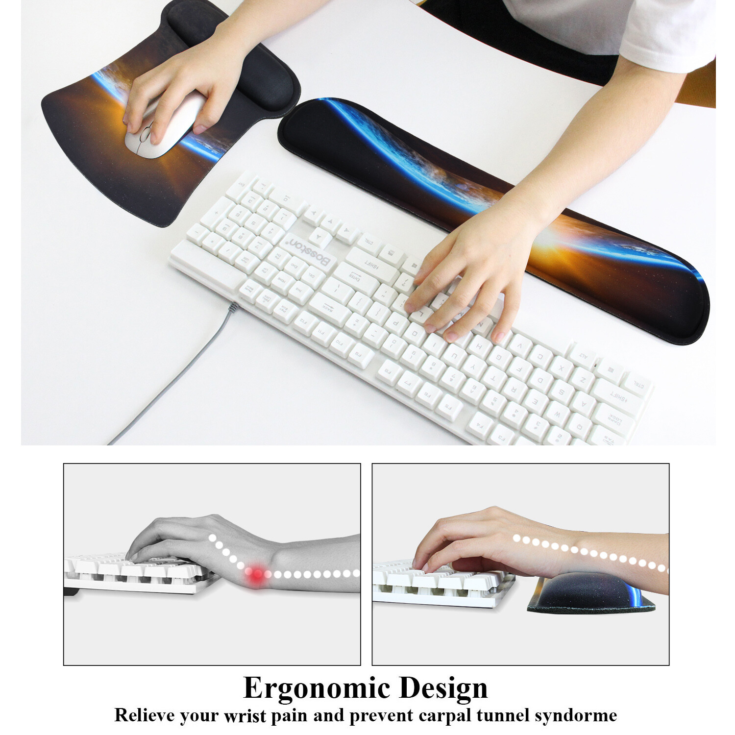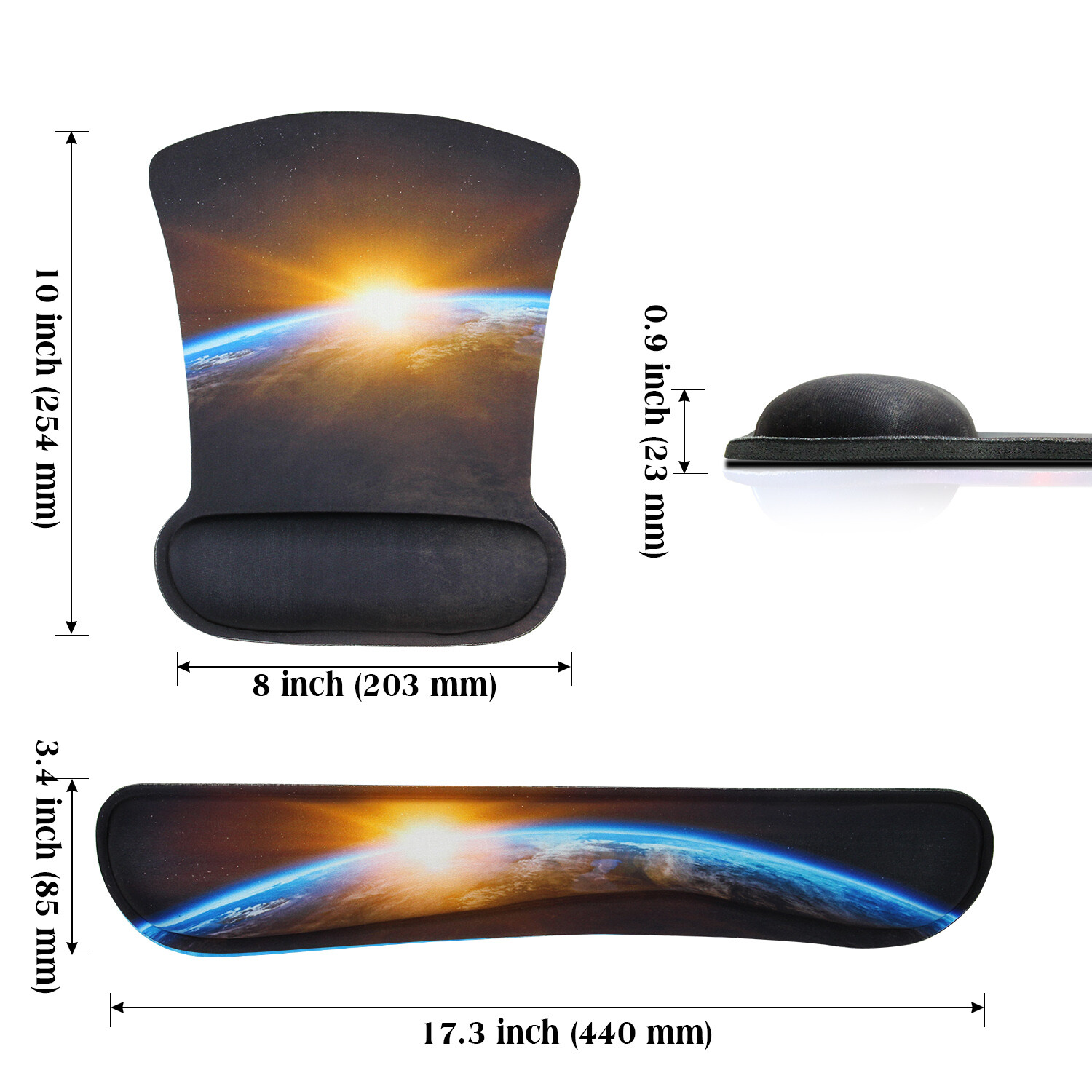 Our store Feedback Add To Favorite Mouse Pad Wrist Support & Gaming Keyboard Wrist Pad Combo Set Specifications: DURABLE QUALITY & UNIQUE DESIGN – Made with high quality soft and durable material with unique vibrant colorful printing. ERGONOMIC DESIGN – Soft foam filled wrist support conforms to your wrist, which helps to reduce wrist stress and provides support & comfort. NO SKIPPING & SKIDDING - High quality cloth surface provides smooth comfort, Thick and rubberized base keeps wrist pad in place. COMFORT & PAIN RELIEF – Soft cushion provides comfort and support which reduce wrist pain and aches. DIMENSIONS: - Mouse Pad 10 inch ( 254 mm) X 8 inch (203mm), - Wrist Pad 17.3 inch (440 mm) X 3.25 inch (83 mm) x 0.86 inch (22 mm) All orders are shipped within 1 business day of payment, excluding Sunday and Holidays. FREE tracking for US Domestic package. We accept payments via Paypal and Credit Cards. We are required to collect sale tax for all the shipment to New York. We are a trusted eBay seller and fully committed to ensuring that you have a positive experience when purchasing from us. If you have any questions regarding your order or if you experience any issues, please fell free to contact us.