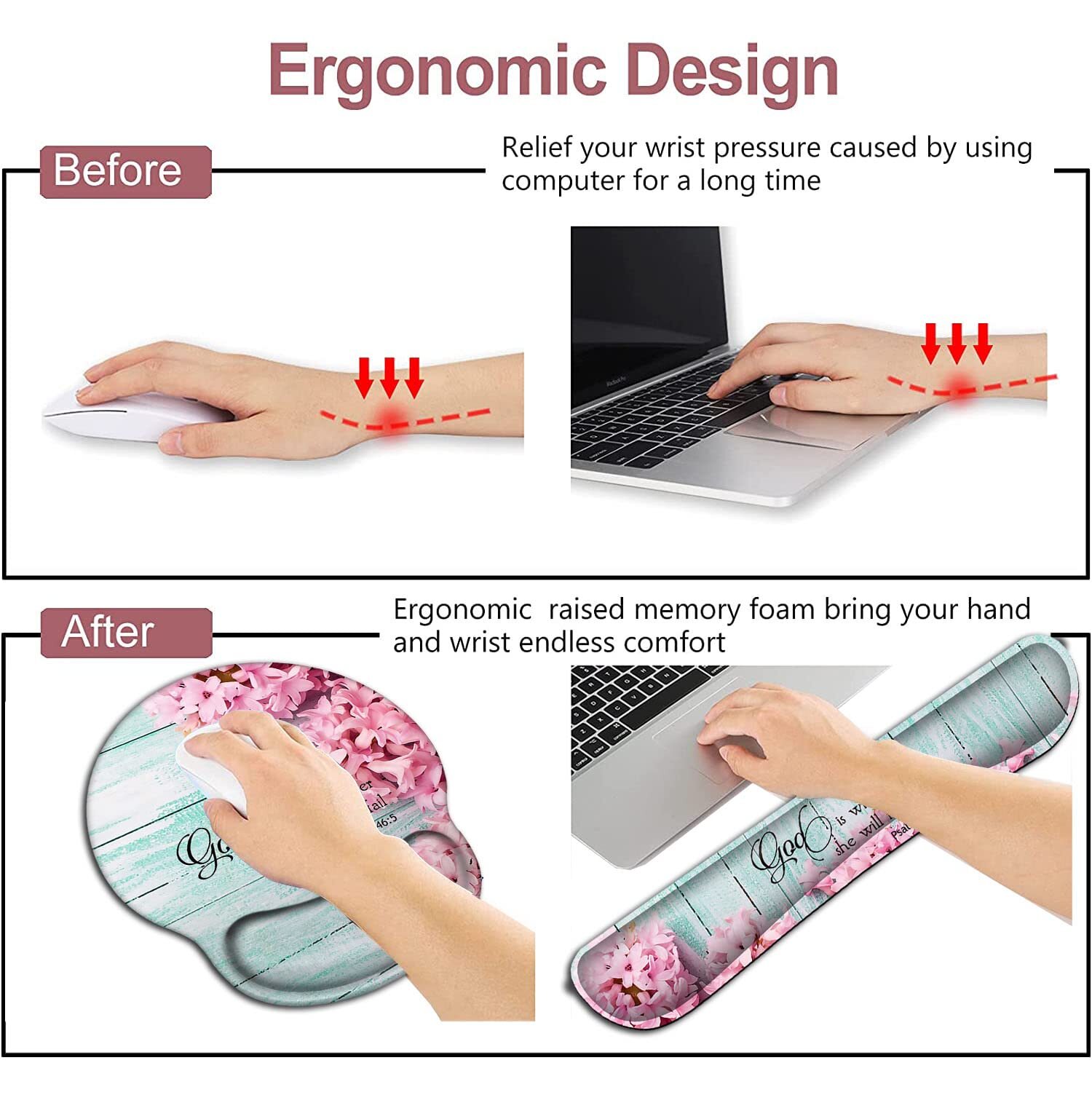 Mouse Pad with Wrist Support, Ergonomic Gel Mouse Pad Beautiful Flowers,Pink Hyacinths on Wood Panel,Non-Slip Durable, Memory Foam Keyboard Wrist Rest, Suitable for Office Typing Games Welcome to MY STORE No Extra Charge Flat Rate Shipping 24/7 Support Always Able to Help eBay Payment We Accept eBay Payments Method Fast Delivery We Process & Deliver on Time Mouse Pad with Wrist Support, Ergonomic Gel Mouse Pad Beautiful Flowers,Pink Hyacinths on Wood Panel,Non-Slip Durable, Memory Foam Keyboard Wrist Rest, Suitable for Office Typing Games Product Description Product Features 【Gel Pad】Filled with excellent cooling gel. Soft and comfortable gel padded pad. When your hand leaves it, it will slowly rebound without deformation. This wrist protector mouse pad is ergonomically designed to protect your wrist joints, reduce wrist fatigue and provide maximum comfort and support for your wrist. 【Ultra-smooth Surface】High line count and smooth surfaces optimize optical and laser sensors for faster and more accurate mouse tracking. 【Non-Slip Rubber Base】High-quality non-slip rubber base, the back of the mouse pad can firmly grasp the desktop, compared with the normal mouse pad, the friction resistance is increased by 73%, it can prevent any accidental movement of the mouse pad while typing. And the reinforced edge can effectively prevent damage and deformation, guarantee long-term use, provide you with stable operation, and let you move your mouse freely without worrying about the mouse pad slipping away. 【Eco-friendly and easy to clean】Made of eco-friendly materials, with ROHS certificate to ensure safety. No toxic and chemical odors. High quality printing process, durable, colorfast, wrinkle free, easy to clean and keep clean.You only need give it a quick and soft wipe with a damp cloth and they'll be fine. Shipping We do not ship to a different address. We will ship to the address you provide on eBay only. Please check your address before purchase. Fast shipping is very important for us. It should take 3-5 business days for the product to reach your destination. If it takes any longer than that, please do not hesitate to contact us to resolve the issues. Returns All our products come with a 30-Day Return Policy. If you would like to return your item and you are within 30 days of the purchase If you are not 100% satisfied, please let us know the Detailed Problem,We will give you a 100% satisfactory solution. If you received an incorrect, damaged, defective, or item not as described, contact us for a partial/full refund or replacement on our cost. Free Shipping and Free Return 30-Days Money Back Guarantee. Payment We accept eBay payments such as PayPal, Google Pay, Visa, MasterCard, and American Express. Payment is processed through eBay's secure system. Please ensure that your shipping address is correct before making the payment, as we are unable to change it after the order is processed. For any payment-related issues, please contact eBay customer support. Feedback Your feedback is very important to us. After you receive your package and are satisfied with our service, please leave us positive feedback. If you have any problem with your order or any questions, please contact us before leaving any type of feedback. Contact Us If you have any questions related to our products, please don't hesitate to contact us through eBay message.
