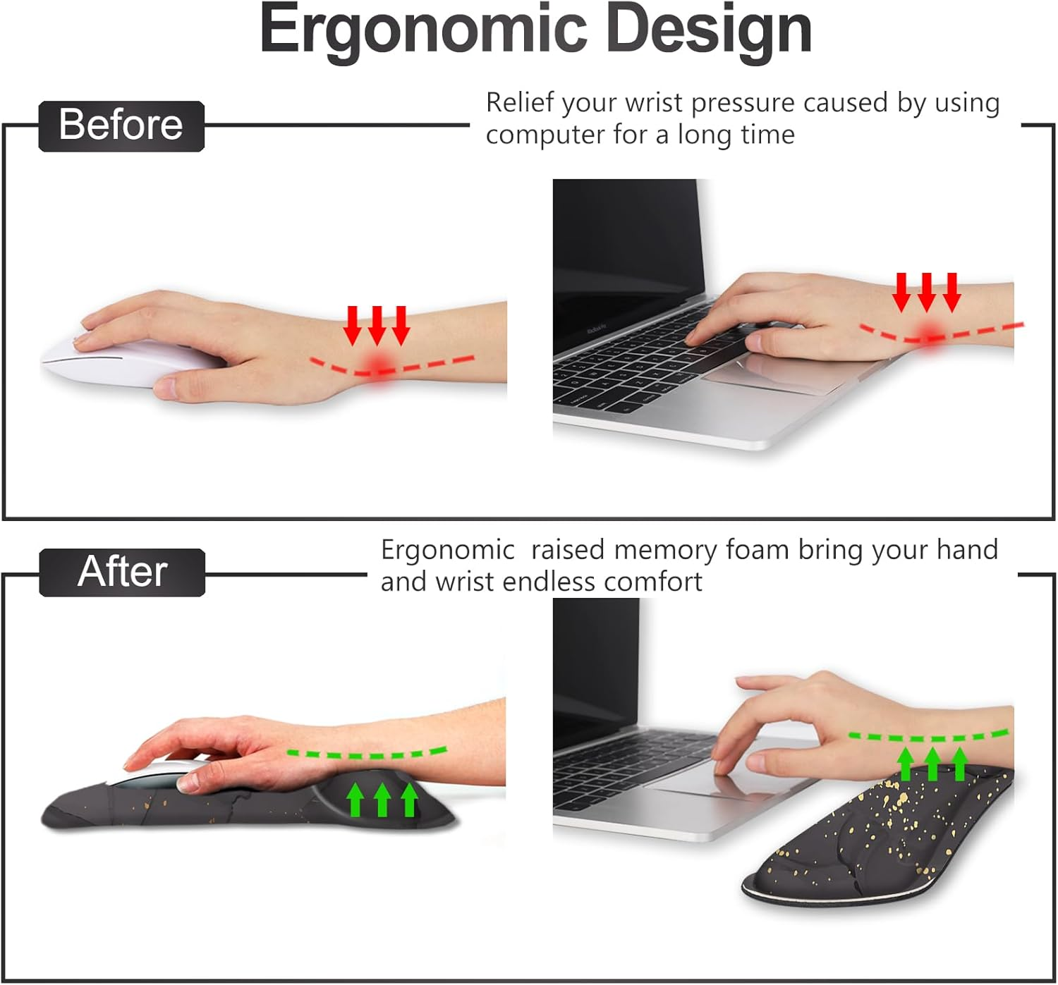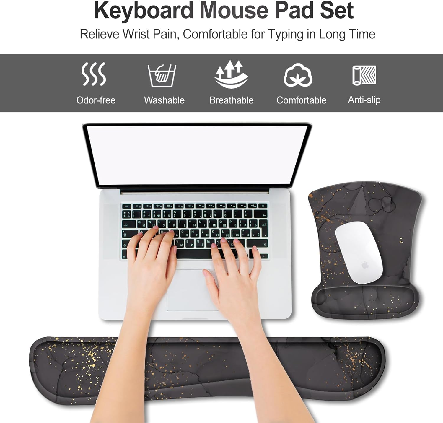 This mouse pad and wrist rest combo is a game-changer! The memory foam is super comfortable, reducing wrist strain during long hours of work or gaming. The non-slip base keeps it firmly in place, and the sleek marble design looks great on any desk. Perfect for anyone who types or games a lot—definitely worth it!