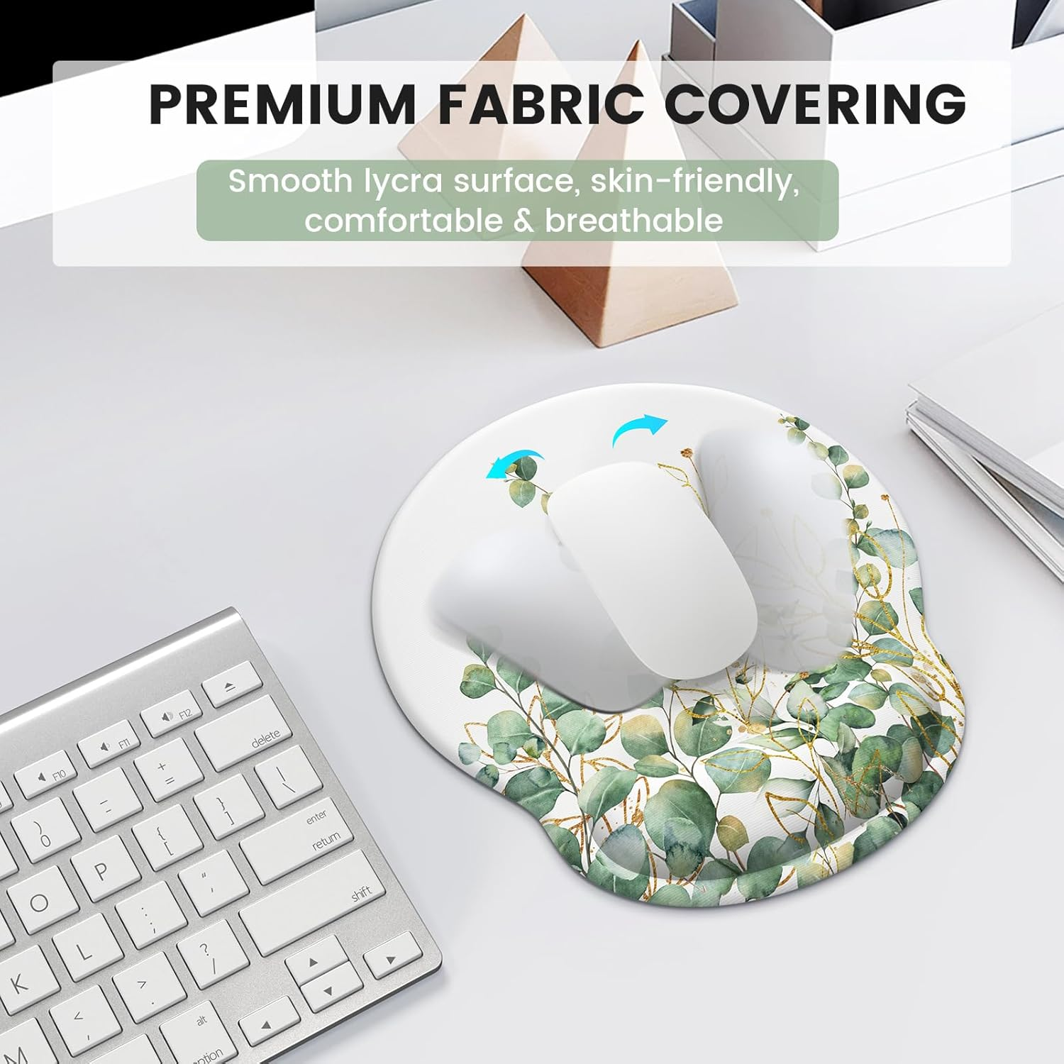 This mouse pad and wrist rest set is a game-changer for long work or gaming sessions! The soft, cushioned support keeps my wrists comfy and reduces strain, while the non-slip base stays firmly in place. The floral eucalyptus design adds a nice touch to my desk, and the fabric feels smooth and durable. Perfect for keeping typing pain-free and stylish!