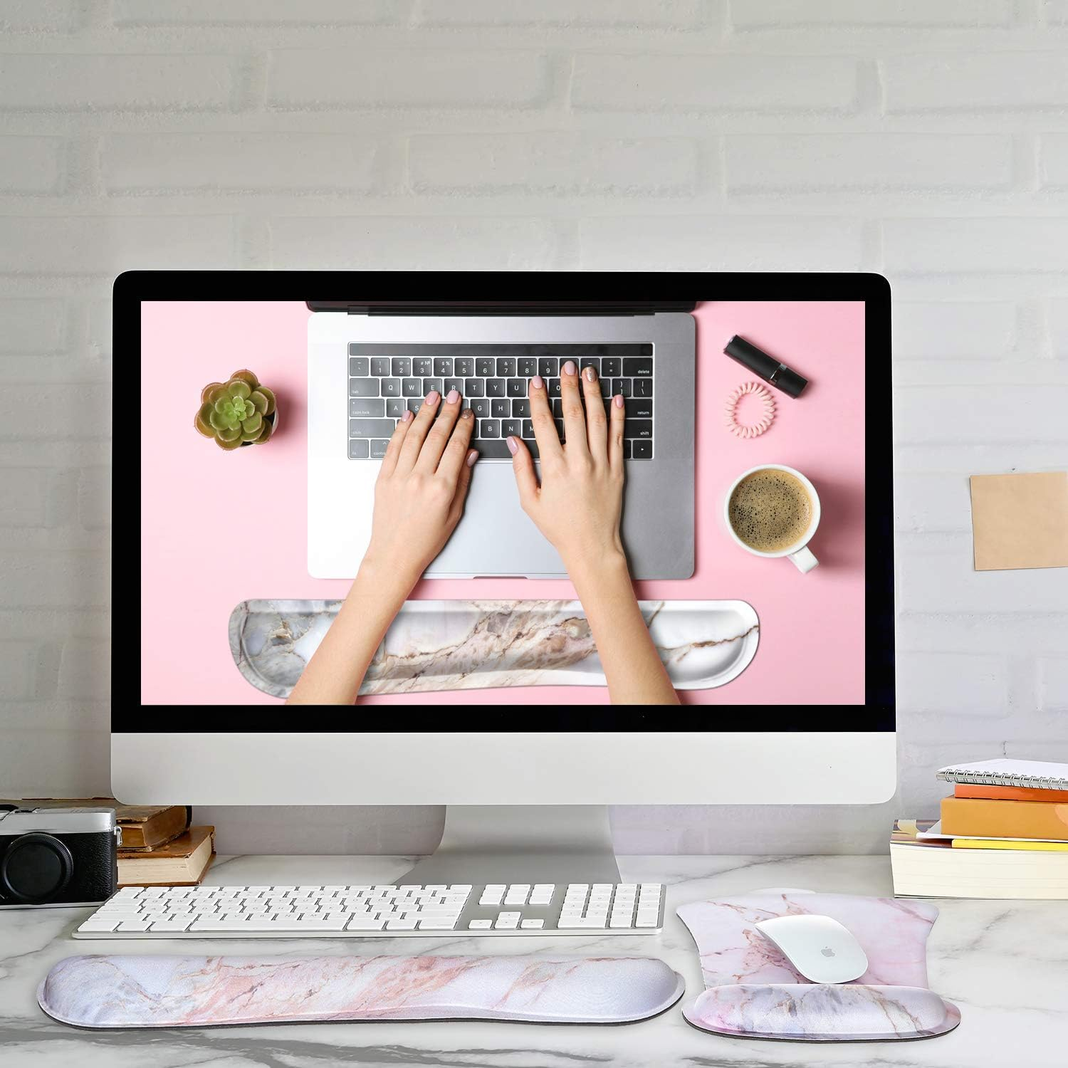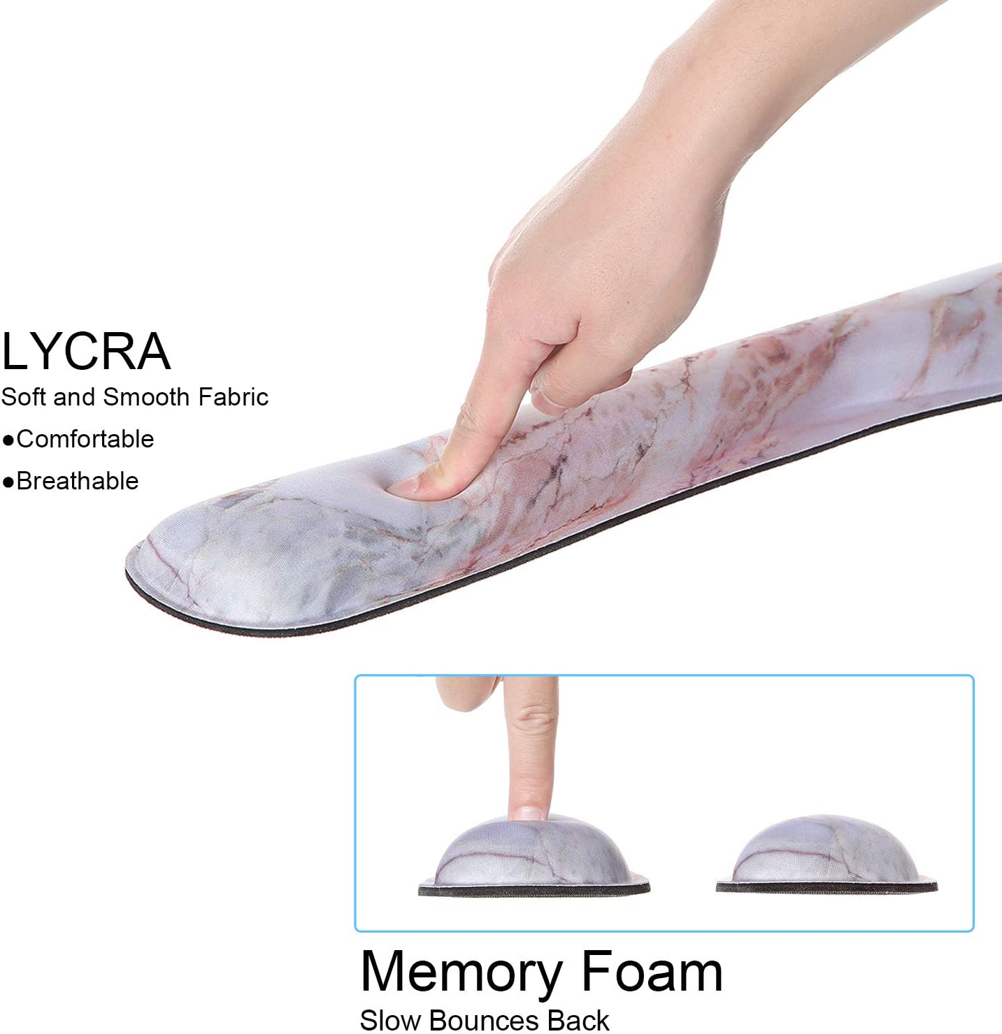 Excellent Size: keyboard wrist rest: 17.5 x 3.3 inch, mouse pad wrist support: 9.9 x 7.9 inch. With a optimal size and design, fit for all kinds of mouse /keyboard so you never need worry about the compatibility. Compatible with MacBook / iMac / Chromebook / Laptop / Desktop. Ergonomic Design: The soft rebound memory foam keeps hand in natural position and protecting the wrist joint, reduce the wrist fatigue and pain caused by the long time use of the computer, and have a good prevention effect for RSI. Non-slip Base: Natural Rubber bottom with anti-skid design can strongly grasp your desktop and effectively prevent unwanted move, so you never need worry about the unpredictable movement will affect you when working or playing games. High Quality: Our wrist pads applied breathable smooth Lycra fabrica and premium memory foam. Memory foam is no easy to deformation, will always bounce back to it’s origin. Edges has been reinforced to prevent deformation and damage to guarantee the longer hours of use. Unique Look: Handpicked pattern makes the wrist rest more attractive. Brilliant color, no fade, no wrinkle, easy to wash and keep clean. We're not just serious about delivering the finest quality products to our customers - we're also serious about offering products that looks aesthetically pleasing. Product Description
