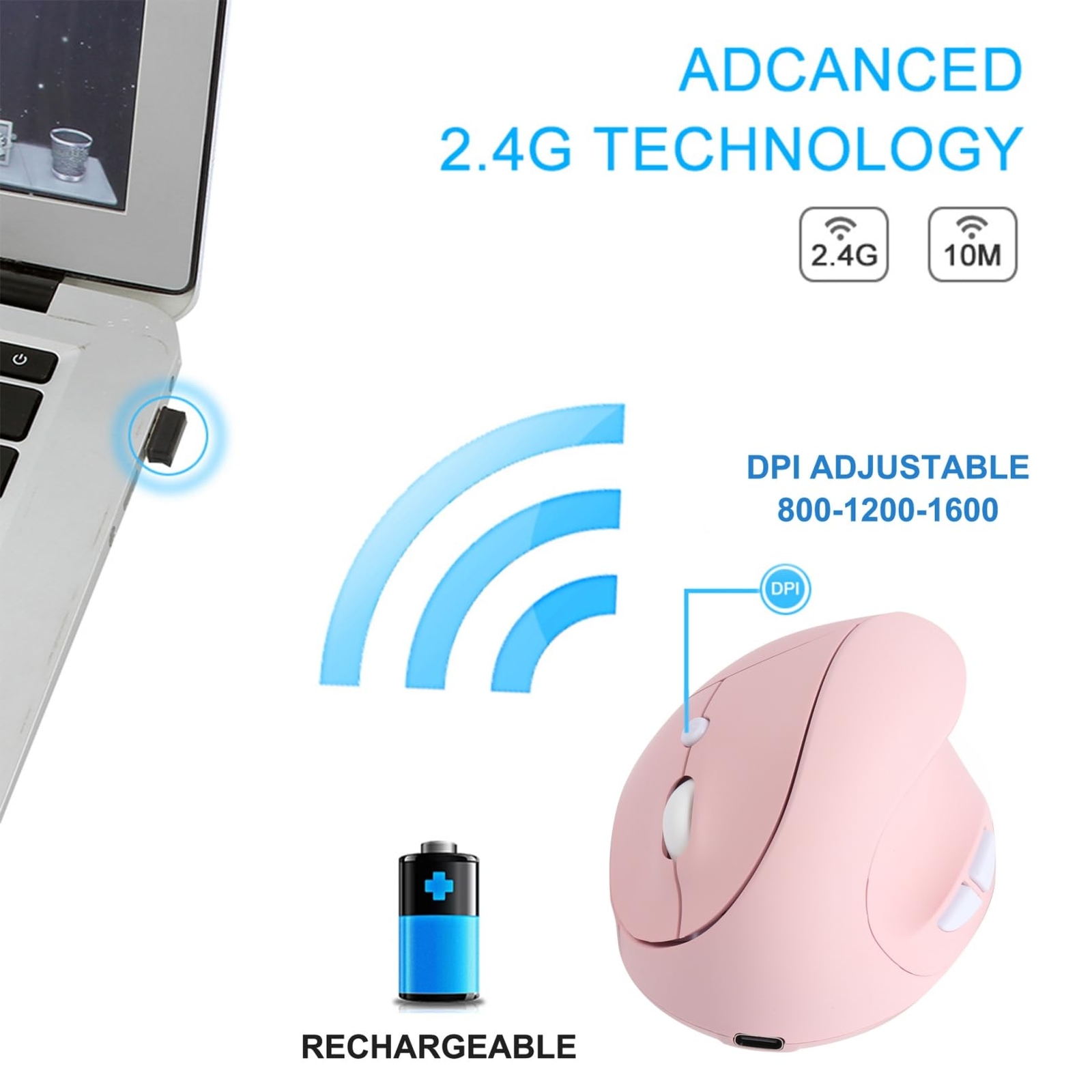 Wireless Mouse,2.4G Ergonomic Vertical Rechargeable Computer Mice Optical Silent Cordless Pink Mouse with 6 Buttons, 3-DPI Adjustable, USB Receiver for Office/Laptop/Computer/PC/MacBook(Pink) 🔍 Product Highlights ✅ Features 【Ergonomic Mouse】Our wireless mouse features an ergonomic design, promoting a healthy and neutral "handshake" position for the wrist and arm. This vertical mouse enhances movement fluidity and reduces overall fatigue. Say goodbye to wrist pain and enjoy effortless work or study. 【Forward & Backward Buttons】The silent mouse features 6 buttons, including advanced "backward" and "forward" buttons for convenient webpage navigation. For users dealing with multiple tasks or viewing several pages simultaneously, it provides a more efficient switching method, enhancing multitasking fluidity and operational efficiency. 【Plug and Play】This computer mouse utilizes a robust 2.4GHz wireless connection with a transmission range of up to 10 meters. The USB receiver is plug-and-play, requiring no software installation. Note: The USB receiver is located at the bottom of the upright mouse. Pink Mouse dimensions are 4.13 x 3 x 2.4 inches. 【Adjustable DPI Options】Our ergonomic mouse offers 3 adjustable DPI levels (800/1200/1600), allowing customization based on your daily tasks and gaming needs. With a high-quality optical engine, it delivers faster response times and smoother tracking, providing higher precision and operational efficiency. 【Wide Compatibility】The pc mouse is compatible with Windows XP, Windows Vista, Windows 7/8/10, Mac OS X, and other operating systems. Whether it's a PC, desktop, laptop, or any device with a USB port, this USB mouse can handle it. (Note: Not compatible with Mac OS). 【Smart Power Saving】Our rechargeable mouse comes with a built-in rechargeable lithium battery, requiring only 3-4 hours for a full charge. After a few minutes of inactivity, it automatically enters sleep mode, easily awakened with a gentle click. Professionally tested, each wireless vertical mouse can withstand over 5,000,000 clicks, offering a lifespan of 5-10 years. 🚚 Delivery Details We do not ship to a different address. we will ship to the address you provide on the ebay only. Please check your address before purchase. Quick and reliable shipping. Orders are processed within 1-2 business days. It should take 3-5 business days for the product to reach your destination (Saturday and Sunday excluded). If it takes any longer than that, please do not hesitate to contact us to resolve the issues. 🔄 Return Policy Returns accepted within 30 days of purchase. Full refund available. Items must be returned in their original condition and packaging. 💳 Payment Methods Payment accepted via PayPal, credit cards, and other eBay-supported methods. Please ensure your payment details are accurate to avoid delays. 💬 Customer Reviews We take our reputation seriously, we buy and sell online, so we understand the value of trust. If you are unsatisfied with your order, please contact us and we will work with you to resolve it to your satisfaction. 📞 Contact Us If you have any questions, feel free to contact us through eBay messages. We're here to assist you!