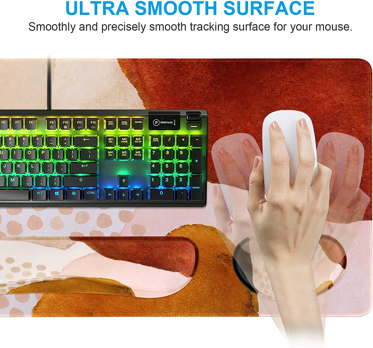 This gaming mouse pad set is a game-changer! The XXL size fits my keyboard and mouse perfectly, keeping my desk neat. The memory foam wrist rest is incredibly comfortable, reducing strain during long sessions. The smooth surface glides effortlessly, and the non-slip base stays put. The breathable material keeps my wrists cool, and the soft fabric feels premium. It’s durable, holds its shape well, and adds a sleek look to my setup. Perfect for gaming or work—highly recommend!