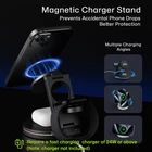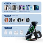 【360°chassis rotation】The chassis supports 360 degree infinite loop rotation without removing the charging cable, making it convenient for you to watch videos. 【Fast Wireless Charger】Supports both horizontal and vertical charging methods. It provide up to 10W fast charging for iPhone 16 / iPhone 15; 7.5W for iPhone 14 / iPhone 13 / iPhone 12, up to 3W fast charging for iWatch, and up to 2.5W fast charging for AirPods. Require a fast charging charger of 24W or above (Note: charger not included) 【Wide Compatibility】The wireless charger can charge iPhone iWatch Airpods simultaneously. Compatible with iPhone 16/16 Plus/16Pro/16 Pro max15/15 Plus/15Pro/15 Pro max/14/14 Plus/14Pro/14 Pro max/13/13Pro/13Pro Max/13 mini/12/12Pro/12Pro Max/12 mini/11/11Pro/11Pro Max/XS/XR/XS MAX/X/8/8Plus & Apple iWatch 9/8/7/6/5/4/3/2/1/SE/Ultra 1/2 & AirPods Pro2/Pro/4/3/2 【Powerful Magnetic】Leveraging powerful magnetic alignment, it provides iPhone and iWatch with precise charging points and a seamless charging experience, eliminating any concerns about device dropout! The stand features a 360-degree adjustable viewing angle and supports both vertical and horizontal charging, making it exceptionally convenient for watching videos and checking received information. 【3-in-1 Wireless Charging Station】Specifically designed for Apple product users, wireless charging allows you to safely charge your iPhone, Apple Watch, and AirPods simultaneously overnight with just one cable. Eliminate the need for multiple chargers and cables, keeping your space tidy and organized. Note: Please do not wear a case thicker than 5mm(0.2") 【Easy to Carry & Foldable Design】The iPhone charging station can be folded into a small size when not in use. It fits more easily into pockets and bags. When traveling or on business trips, there's no need to carry multiple chargers or tangled cables. This iPhone magnetic charger is versatile for use on desks, bedside tables, in hotels, and more. No matter where you go, you can take it with you, making it extremely convenient. 【Safer Intelligent Protection】The wireless charging station ensures safe and reliable charging for your compatible devices, with a built-in intelligent chipset providing overcurrent, overvoltage, and overtemperature protection during charging. When the temperature rises too high, charging will automatically be interrupted to protect your device. 【Landscape & Portrait Orientation】Charge in portrait mode for video calling and messaging or landscape orientation while watching videos. 【Refined Details】Our Apple charger is FCC certified, delivering exceptional performance in charging efficiency, heat dissipation, and safety protection. Crafted from Zinc Alloy, the charging stand boasts a high-end appearance, making it a perfect decoration and gift for friends and family. 【What You Get】The package includes a wireless charger, USB to Type C charging cable, user manual. If you have any problems during use, please feel free to contact us. Not included adaptor.