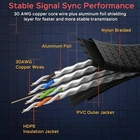 Ethernet Cable 50 ft, Cat 8 Ethernet Cable with 40Gbps 2000Mhz High Speed Ethernet Cable, Shielded Heavy Duty SFTP RJ45 LAN Cable Patch Cord for Modem Router Gaming PC PS4/5/6 Xbox, Black About this item HIGH SPEED ETHERNET CABLE: Lightning fast transmission of up to 40 Gbps, 4x faster than Cat 7 ethernet cable, bandwidth of up to 2000MHz. Smolink internet cable is available for you to stream HD videos, music, surf the net, play games and complete office work at hyper speed MORE CONVENIENT: Cat 8 gigabit ethernet cables are in flat design to avoid tangled cords and save space. Flat lan cable is super flexible to make it easier to hide or run along any surface. You can easily and immediately install the cable run along walls, follow edges or corners when you receive the rj45 cable SUPERIOR STABILITY: Cat 8 ethernet cord is made of 4 Pairs 100% 30WAG pure and thick shielded twisted pair (S/FTP) of copper wires, effectively reduce EMI/RFI interference and optimize signal quality. With 24K gold-plated RJ45 connector to ensure corrosion resistance and long-term performance (without noise or signal loss) INCREDIBLE DURABILITY: Double braided nylon exterior make cat8 internet cable more durable, dirty-proof and tangle-free. The test proves that this sturdy ethernet cord can be bent at least 15000 times and supports over 55lb pull without broken, very suitable for long-term use for outdoor and indoor UNIVERSAL COMPATIBILITY: Our long ethernet cable is equipped with RJ45 connectors ensure universal connectivity. Ideal for 10/100/1000/10G/40G BASE-T Ethernet and connecting networked devices such as computers, printers, routers,smart TV, media player and so on IN THE BOX: 50 ft Ethernet cable Cat 8 with 2000 MHz bandwidth